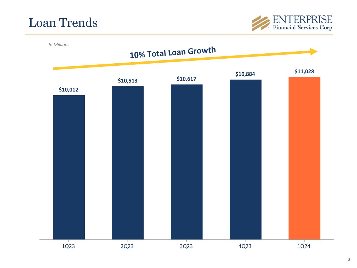 $10,012 $10,513 $10,617 $10,884 $11,028 1Q23 2Q23 3Q23 4Q23 1Q24 In Millions 10% Total Loan Grow th Loan Trends 6