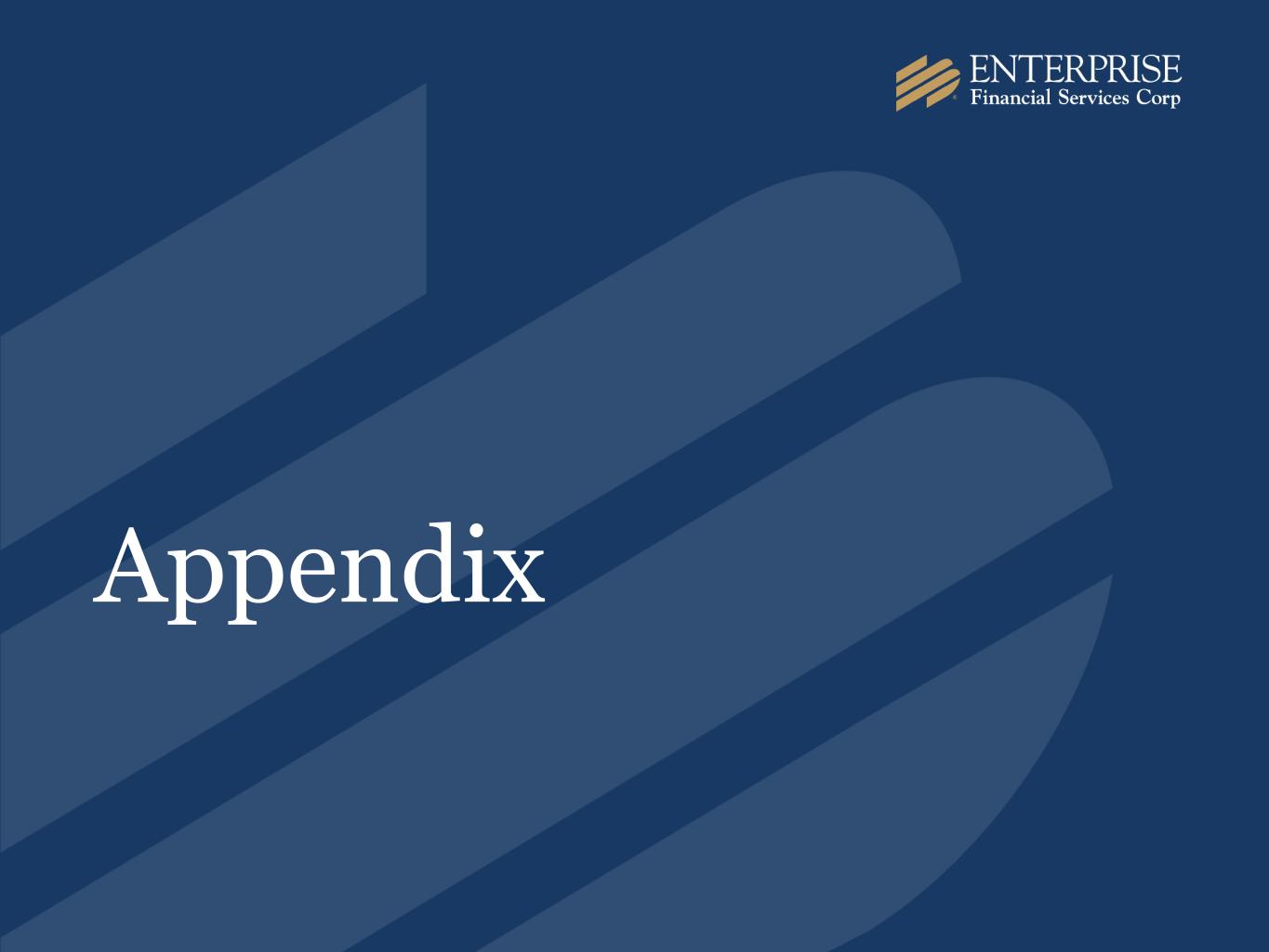 Regulatory Capital 10.0% 14.0% 14.9% 14.7% 14.2% 14.2% 14.6% 6.5% 10.0% 10.9% 11.3% 11.1% 11.3% 11.7% 9.3% 10.1% 10.2% CET1 Tier 1 Total Risk Based Capital CET1 excluding unrealized losses* Minimum "Well Capitalized" Ratio Optimal Capital Levels 2020 2021 2022 2023 2Q24 8.0% 12.6% 12.7% 12.1% 13.0% 12.0% *CET1 excluding unrealized losses on securities (when applicable). This is a non-GAAP measure; refer to appendix for reconciliation. 13.0% 32
