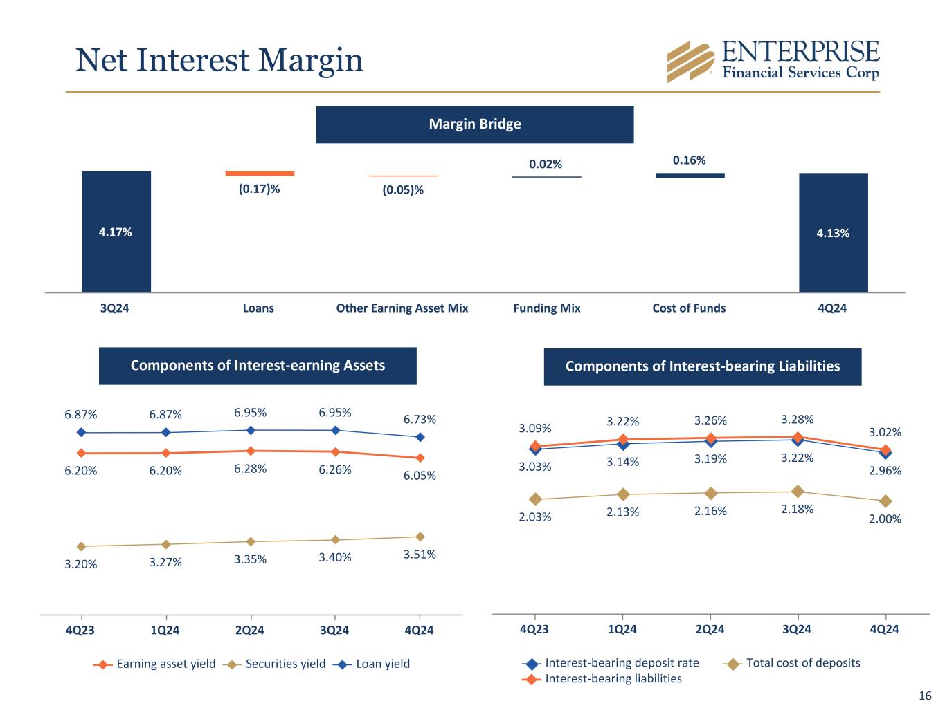 15 $140.7 $137.7 $140.5 $143.5 $146.4 4.23% 4.13% 4.19% 4.17% 4.13% 5.33% 5.33% 5.33% 5.27% 4.66% Net Interest Income Net Interest Margin Avg Fed Funds Rate 4Q23 1Q24 2Q24 3Q24 4Q24 Net Interest Income Trend $ In Millions Stable Net Interest Income 4Q23 1Q24 2Q24 3Q24 4Q24 Net Interest Income - FTE $ 142.6 $ 139.8 $ 142.6 $ 145.6 $ 148.6 Purchase Accounting Amortization/(Accretion) (0.5) 0.5 (0.2) 0.5 0.8 Adjusted Net Interest Income - FTE (Excluding Purchase Accounting) $ 142.1 $ 140.3 $ 142.4 $ 146.1 $ 149.4 Net Interest Margin 4.23 % 4.13 % 4.19 % 4.17 % 4.13 % Purchase Accounting Amortization/(Accretion) (0.02) % 0.02 % — % 0.01 % 0.02 % Adjusted Net Interest Margin (Excluding Purchase Accounting) 4.21 % 4.15 % 4.19 % 4.18 % 4.15 %