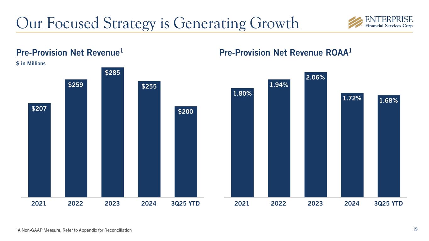231A Non-GAAP Measure, Refer to Appendix for Reconciliation Pre-Provision Net Revenue1 $ in Millions Pre-Provision Net Revenue ROAA1 $207 $259 $285 $255 $200 2021 2022 2023 2024 3Q25 YTD 1.80% 1.94% 2.06% 1.72% 1.68% 2021 2022 2023 2024 3Q25 YTD Our Focused Strategy is Generating Growth