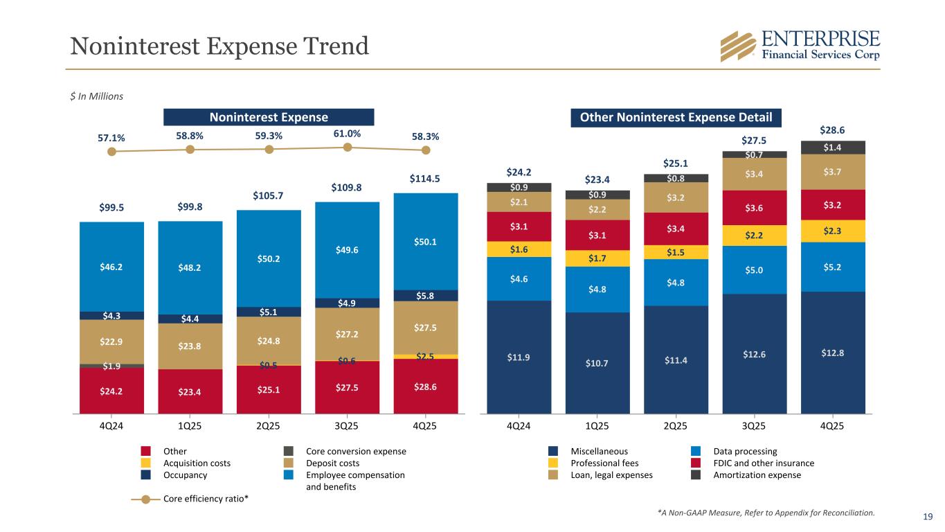 18 Noninterest Income Trend $20.6 $18.5 $20.6 $48.6 $25.4 $4.7 $6.4 $8.5 $6.8 $11.9 $32.1 $6.0 $2.6 $2.2 $(0.3) $3.2$4.7 $4.4 $4.9 $4.9 $5.1$2.5 $2.4 $2.4 $2.5 $2.6 $2.7 $2.7 $2.6 $2.6 $2.6 12.4% 11.1% 11.9% 23.5% 13.1% Other Recaptured Tax Credit Insurance Proceeds* Tax Credit Income (Loss) Deposit Services Charge Card Services Wealth Management Noninterest income/Total income 4Q24 1Q25 2Q25 3Q25 4Q25 $4.7 $6.4 $8.5 $6.8 $11.9 $1.7 $1.7 $2.1 $1.8 $2.1 $0.5 $0.5 $0.5 $0.6 $0.5 $0.9 $0.9 $2.6 $2.1 $1.9$1.0 $0.1 $0.3 $0.1 $0.3 $0.7 $1.4 $0.3 $0.9 $0.3 $0.7 $0.5 $0.6 $0.2 $0.1 $6.2 $1.9 $1.2 $1.1 Miscellaneous Servicing Fees BOLI Swap Fees CDE Private Equity Fund Distributions Gain on OREO Gain on SBA Loan Sales 4Q24 1Q25 2Q25 3Q25 4Q25 $ In Millions Noninterest Income Other Noninterest Income Detail *Represents anticipated proceeds from a pending insurance claim related to a third quarter 2025 solar tax credit recapture event.