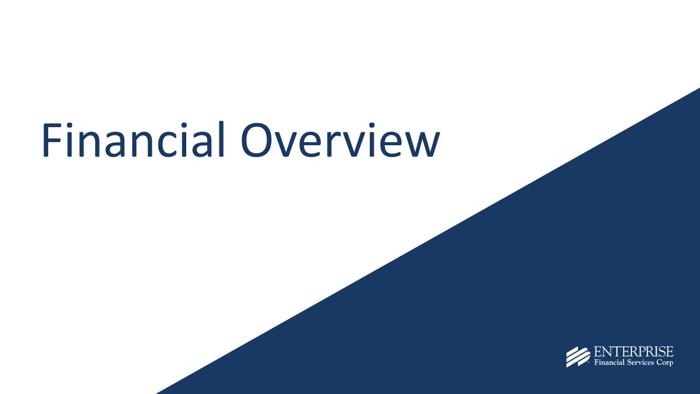 3 Today’s Presenters Jim Lally 58, President & CEO, EFSC Enterprise Tenure: 22 years Keene Turner 46, SEVP, CFO & COO, EFSC Enterprise Tenure: 12 years Doug Bauche 56, SEVP, Chief Banking Officer, Enterprise Bank & Trust Enterprise Tenure: 25 years