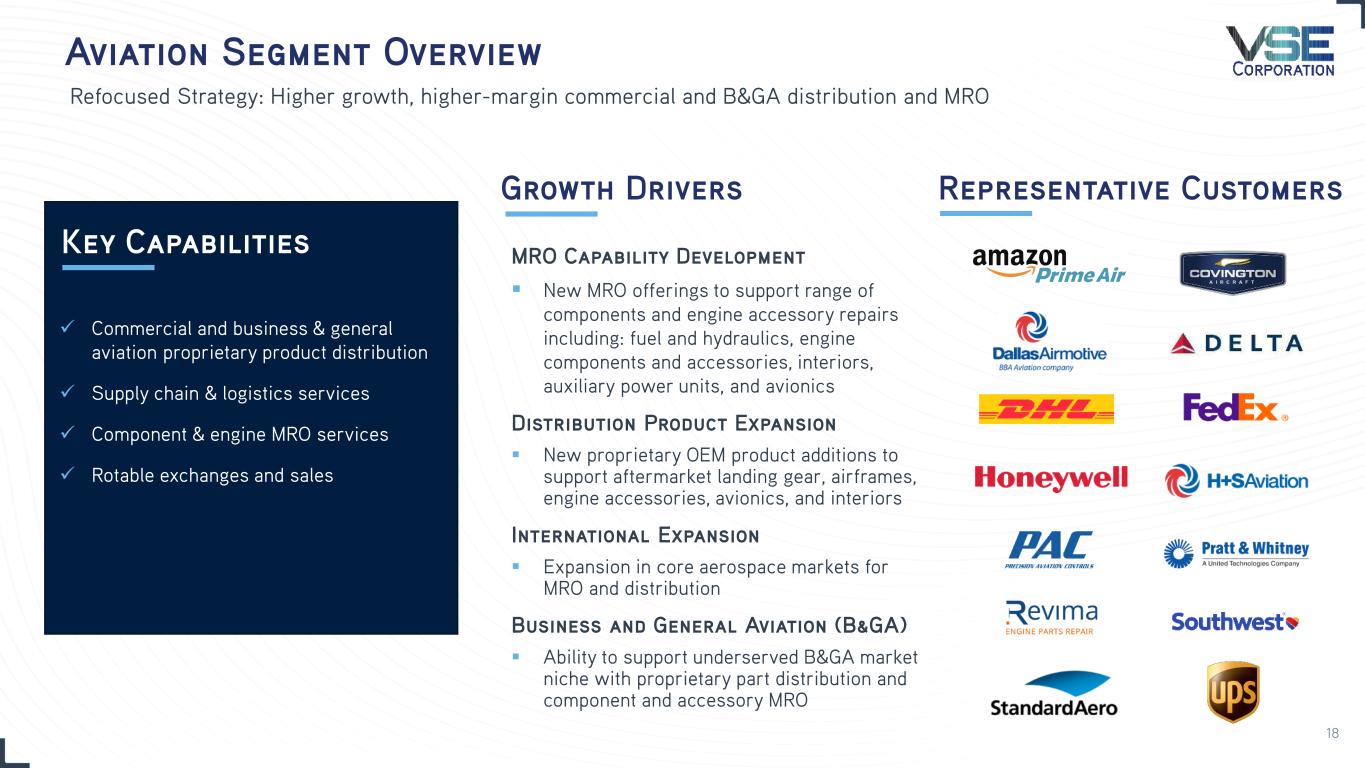 V S E c o r p .c o m Pure-play independent aftermarket service provider with strong organic & inorganic growth opportunities Investment Highlights 3 Distinct End Markets $37M Adj. Net Income ~2,000 Employees $950M Revenue 63+ Years Aftermarket Services $92M Adj. EBITDA Global provider of aftermarket distribution, maintenance, repair, and overhaul (“MRO”), and other services Fragmented end-markets provide for market share capture and high-return acquisition opportunities Strong customer/supplier relationships with embedded services enhance long-term opportunities and revenue stability Cultural transformation driving higher margin sustainable growth Balanced commercial and defense customer base provides resilience through economic and market cycles Note: Figures above reflect TTM 12/31/2022 16