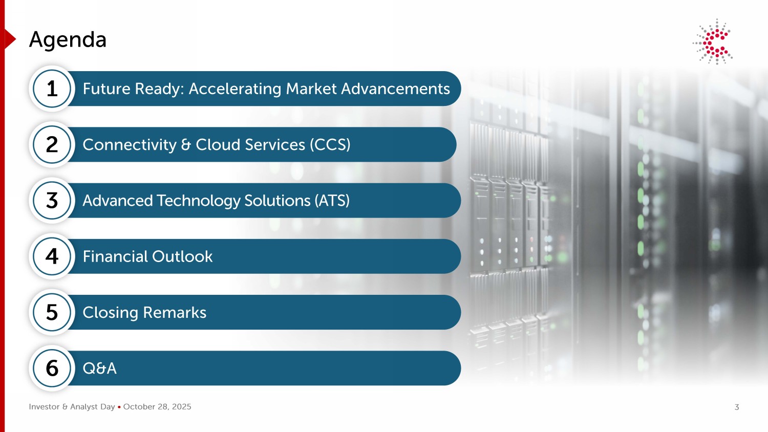 Investor & Analyst Day • October 28, 2025 Agenda Future Ready: Accelerating Market Advancements 1 Financial Outlook 4 Connectivity & Cloud Services ( CCS) 2 Closing Remarks 5 Q&A 6 Advanced Technology Solutions (ATS) 3 3