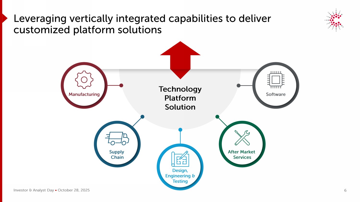 Investor & Analyst Day • October 28, 2025 Leveraging vertically integrated capabilities to deliver customized platform solutions Technology Platform Solution Manufacturing Supply Chain After Market Services Software Design, Engineering & Testing 6