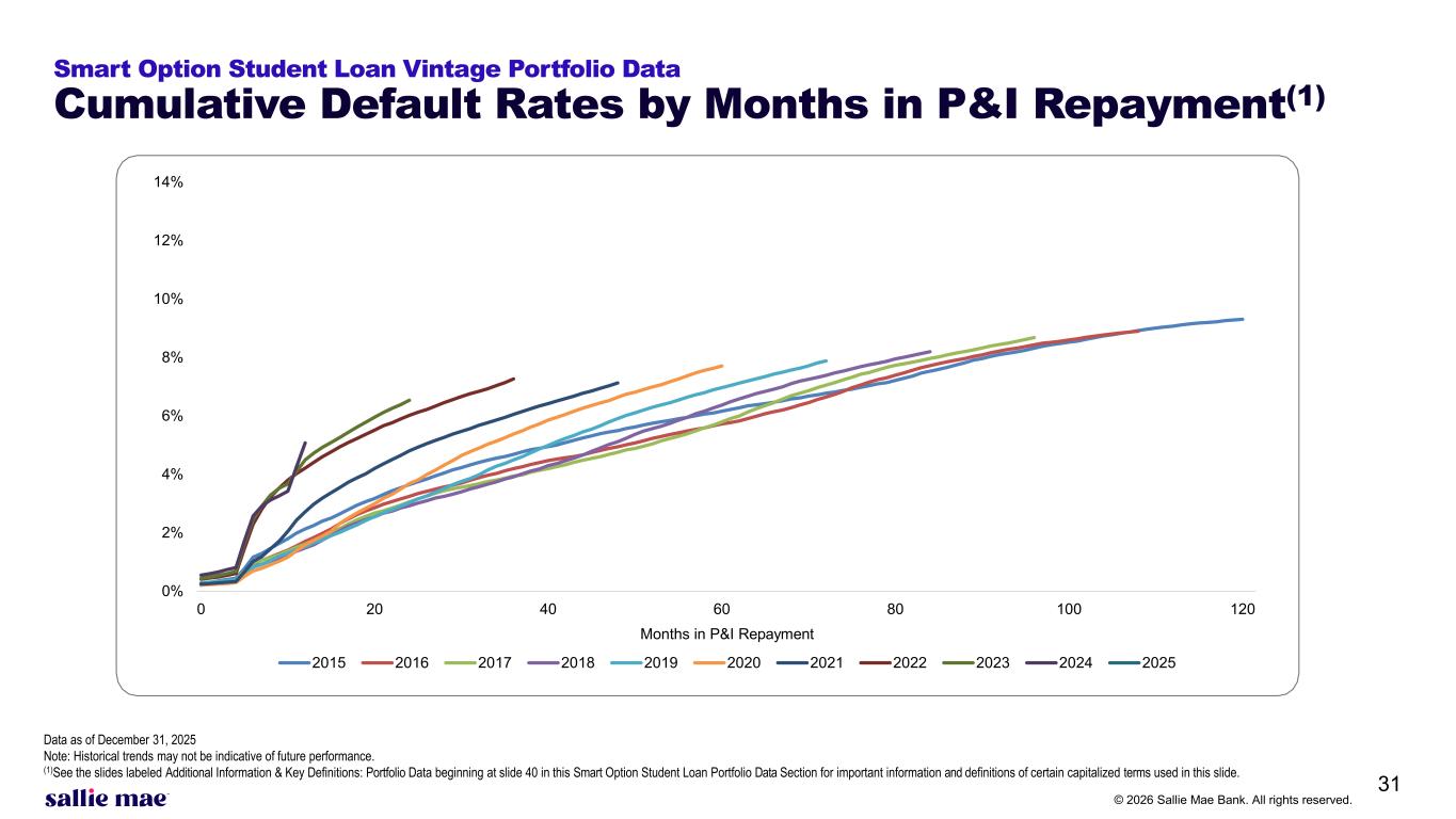 30 © 2026 Sallie Mae Bank. All rights reserved. Smart Option Student Loan Vintage Portfolio Data Cumulative Default Rates