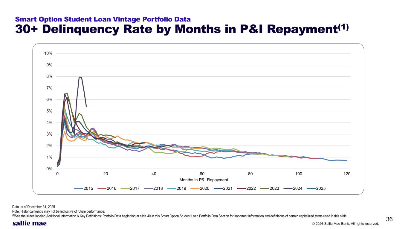 35 © 2026 Sallie Mae Bank. All rights reserved. Smart Option Student Loan Vintage Portfolio Data Delinquency & Periodic Default Rates