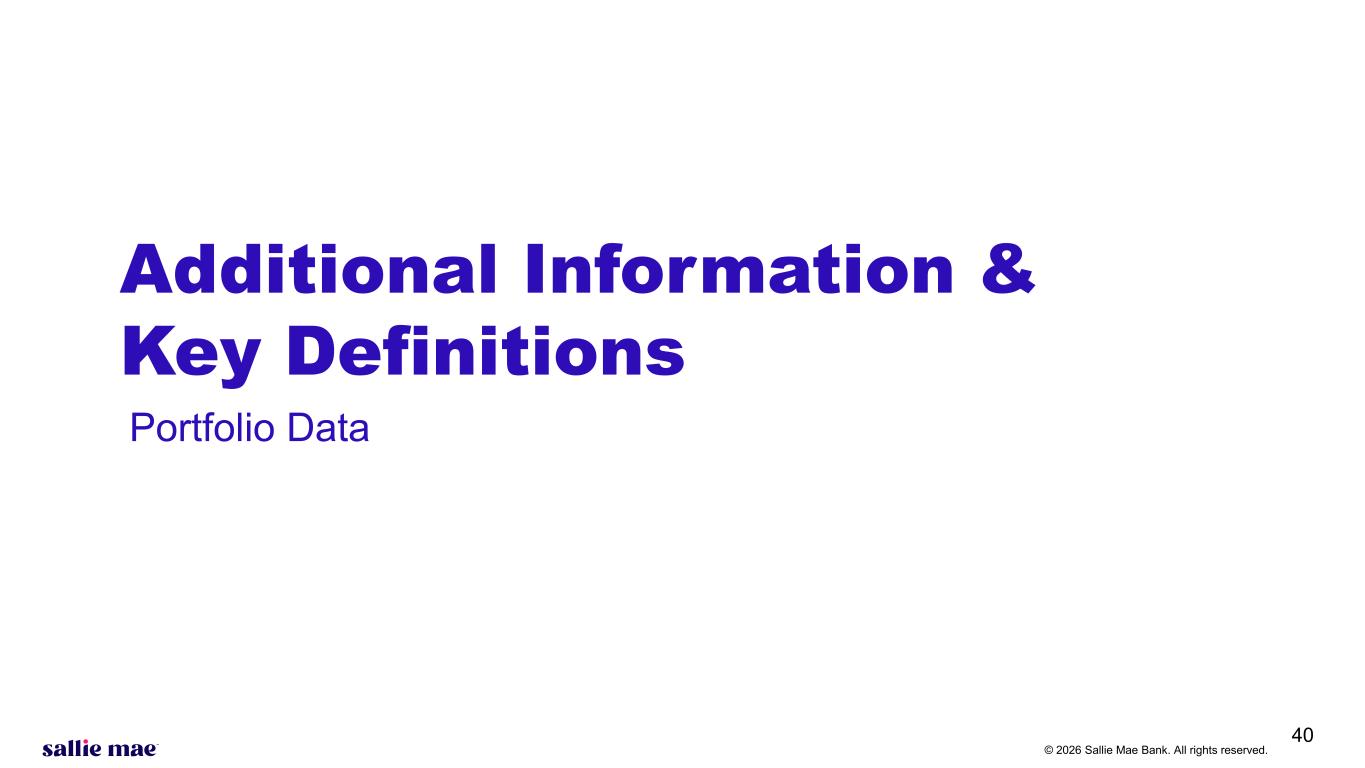 40 © 2026 Sallie Mae Bank. All rights reserved. Additional Information & Key Definitions Portfolio Data
