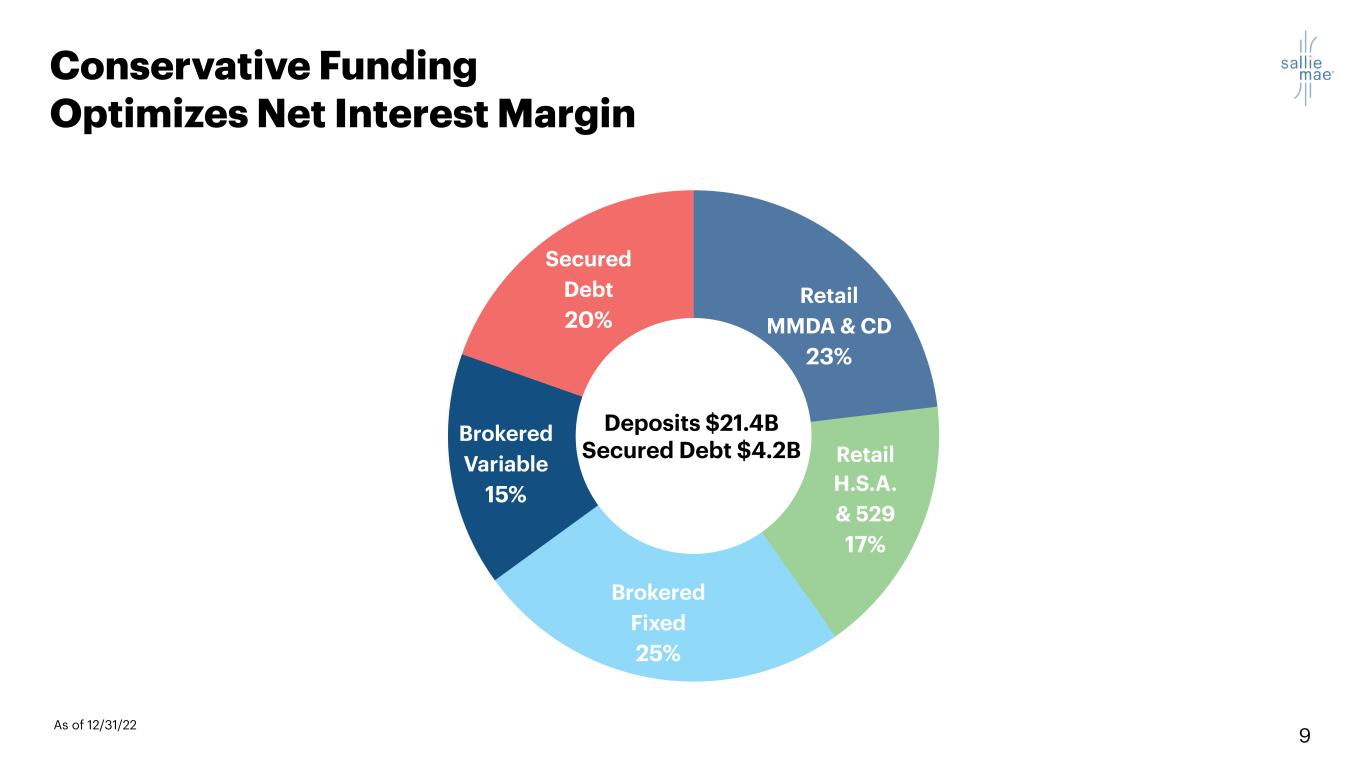 8 Loans $18.0B Variable 45%Fixed 55% Interest Only 19% Fixed Pay 33% Deferred 48% As of 12/31/22 Customer FICO at Original Approval6 780+ 28% 740 - 780 23% 700-739 26% <700 23% Weighted Average FICO: 743 High Quality Private Education Loan Portfolio Smart Option Payment Type Portfolio by Originations Vintage Portfolio Interest Rate Type Pre 2014 4%2014 4% 2015 6% 2016 6% 2017 7% 2018 8% 2019 10% 2020 12% 2021 22% 2022 21% Weighted Average Age: ~3.3 yrs