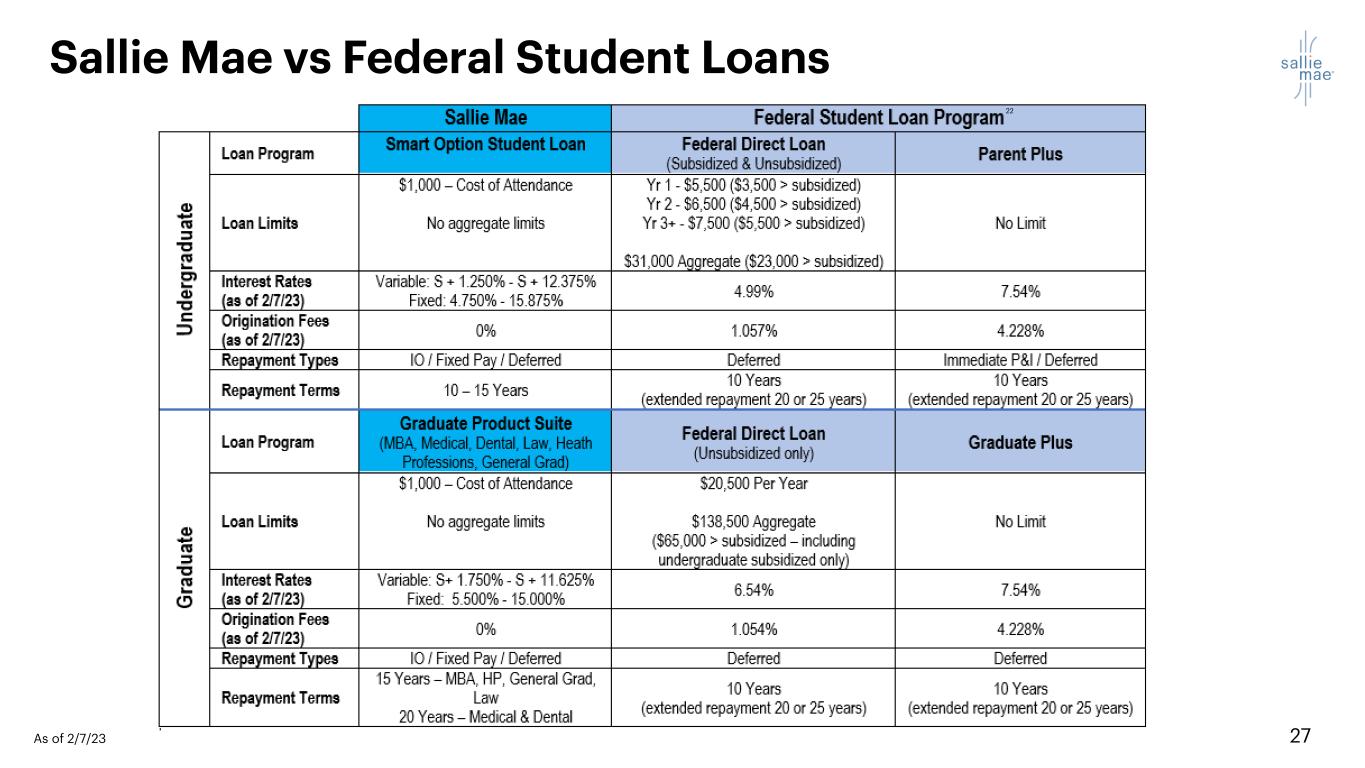 27 Sallie Mae vs Federal Student Loans As of 2/7/23 22