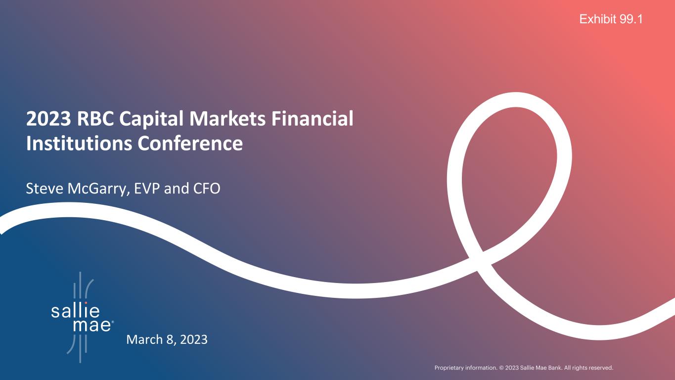 Proprietary information. © 2023 Sallie Mae Bank. All rights reserved. 2023 RBC Capital Markets Financial Institutions Conference Steve McGarry, EVP and CFO March 8, 2023 Exhibit 99.1