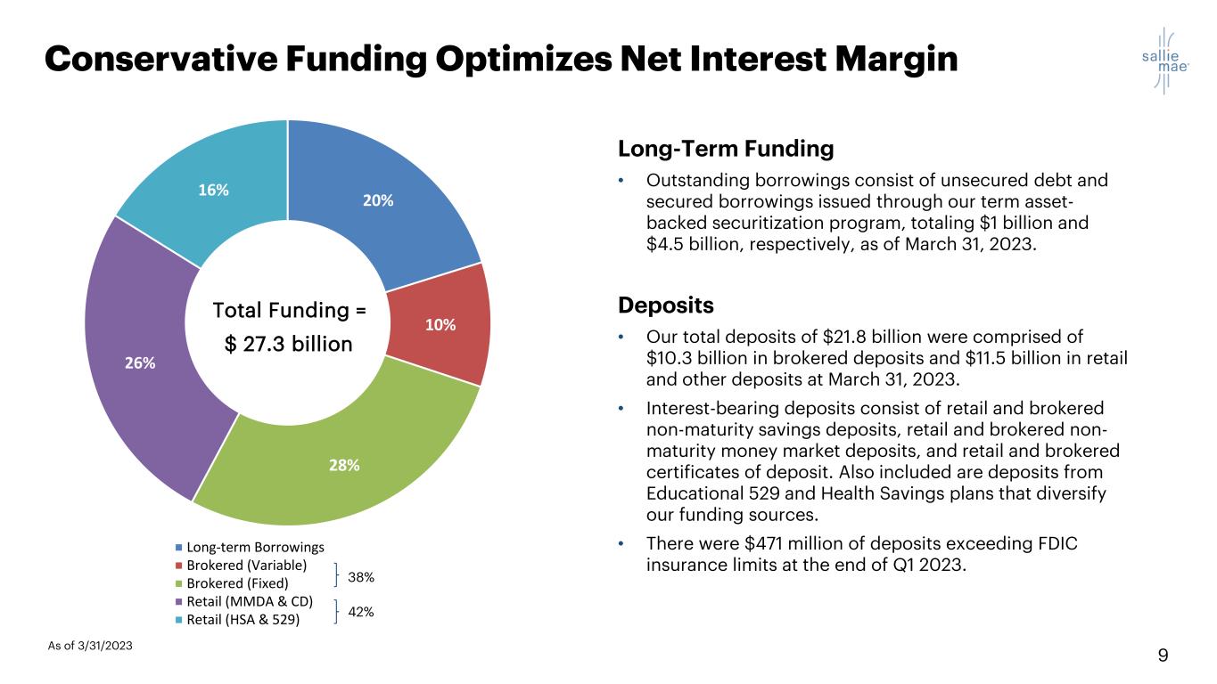 8As of 3/31/23 Customer FICO at Original Approval6 High Quality Private Education Loan Portfolio Smart Option Payment TypeOriginations Vintage Portfolio Interest Rate Type Fixed 58% Variable 42% <700 22% 700-739 26%740-780 24% 780+ 28% Pre 2014 3% 2014 3% 2015 5% 2016 5% 2017 6% 2018 7% 2019 10% 2020 11% 2021 20% 2022 26% 2023 4% Deferred 47% Fixed 34% Interest Only 19% Loans $21.9B Weighted Avg. FICO 744 Loans $19.5BLoans $21.9B
