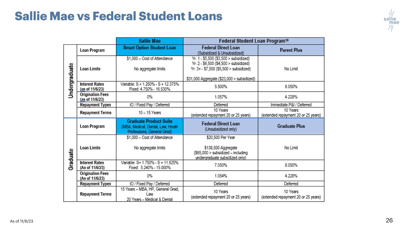 26 Sallie Mae vs Federal Student Loans As of 11/6/23