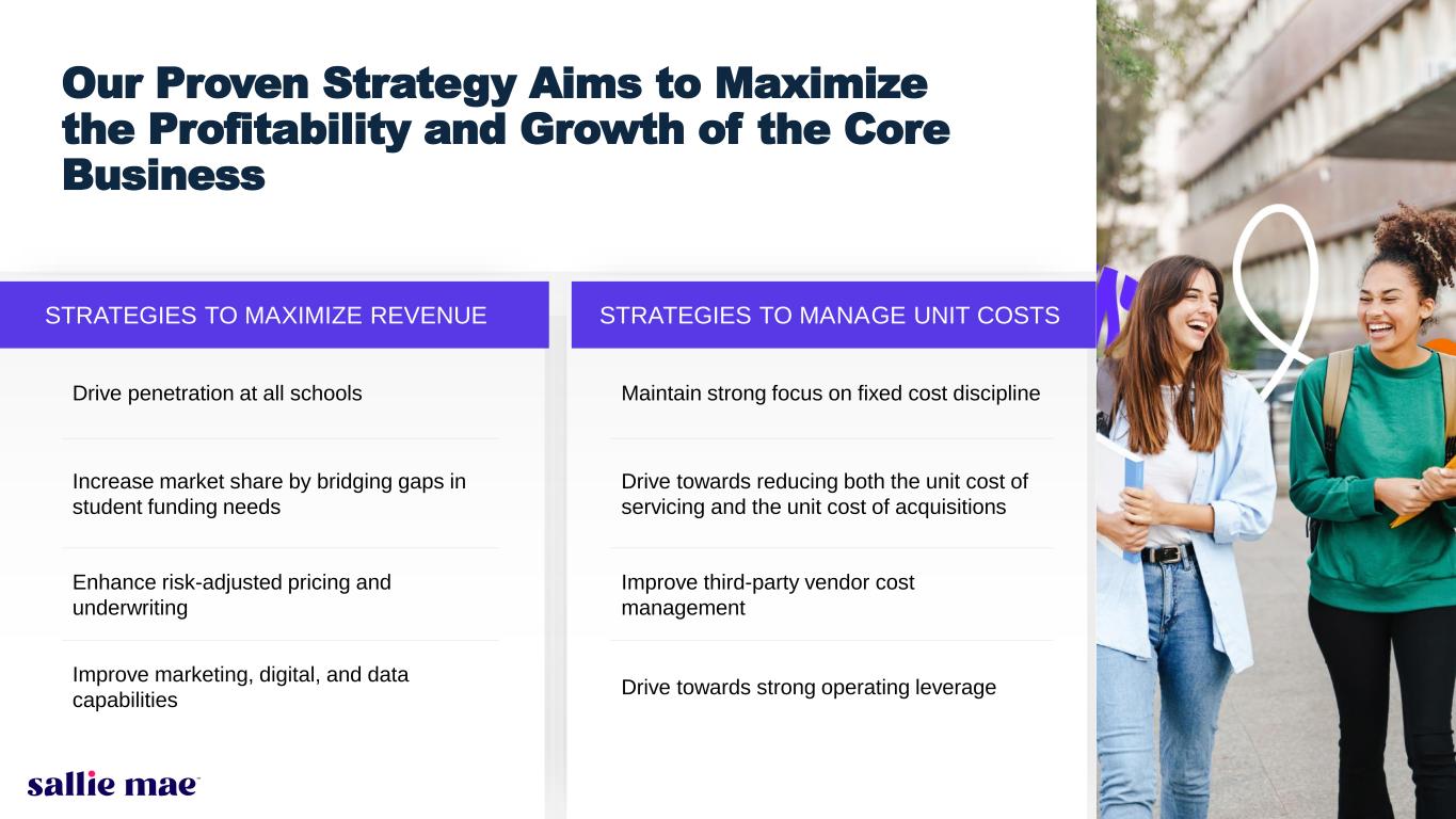 11 STRATEGIES TO MAXIMIZE REVENUE STRATEGIES TO MANAGE UNIT COSTS Our Proven Strategy Aims to Maximize the Profitability and Growth of the Core Business Drive penetration at all schools Increase market share by bridging gaps in student funding needs Enhance risk-adjusted pricing and underwriting Improve marketing, digital, and data capabilities Maintain strong focus on fixed cost discipline Drive towards reducing both the unit cost of servicing and the unit cost of acquisitions Improve third-party vendor cost management Drive towards strong operating leverage