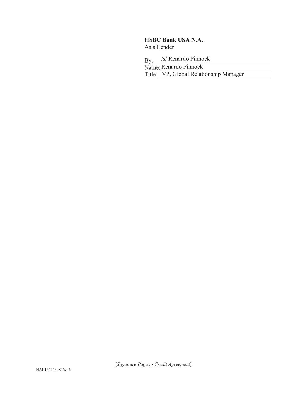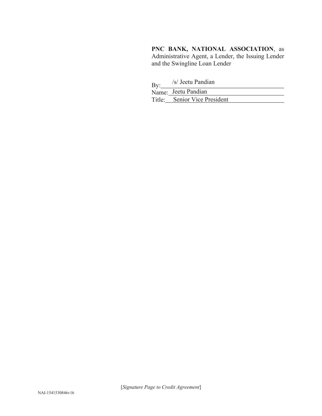 NAI-1541530846v16 [Signature Page to Credit Agreement] PNC BANK, NATIONAL ASSOCIATION, as Administrative Agent, a Lender, the Issuing Lender and the Swingline Loan Lender By: Name: Title: