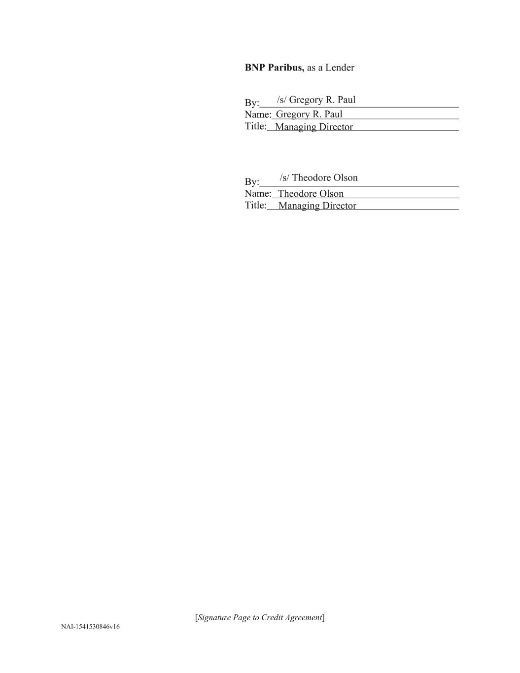 NAI-1541530846v16 [Signature Page to Credit Agreement] By: Name: Title: By: Name: Title: