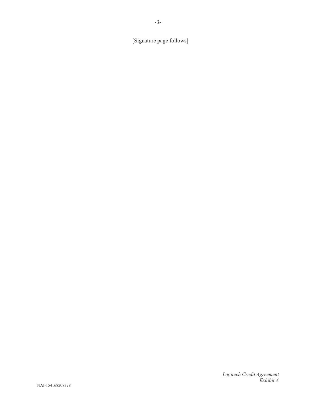 NAI-1541682083v8 -3- Logitech Credit Agreement Exhibit A [Signature page follows]