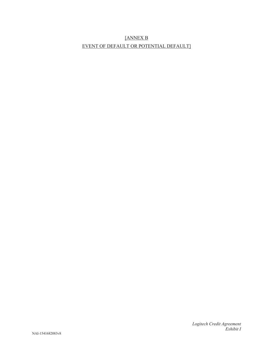 NAI-1541682083v8 Logitech Credit Agreement Exhibit I [ANNEX B EVENT OF DEFAULT OR POTENTIAL DEFAULT]