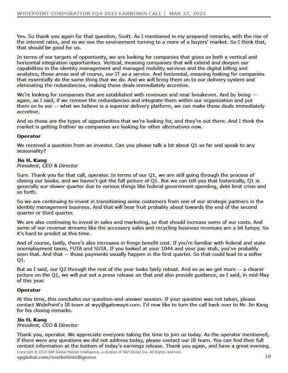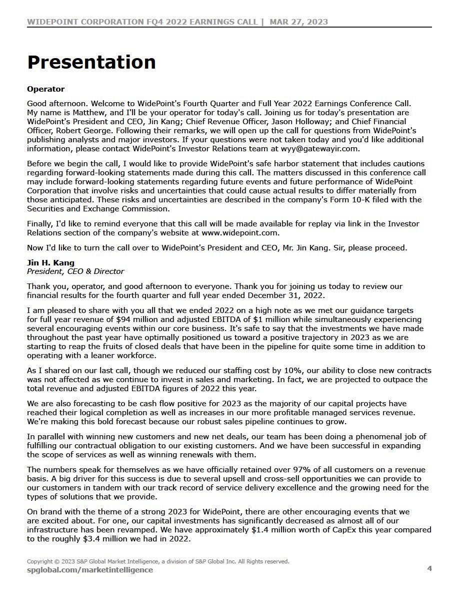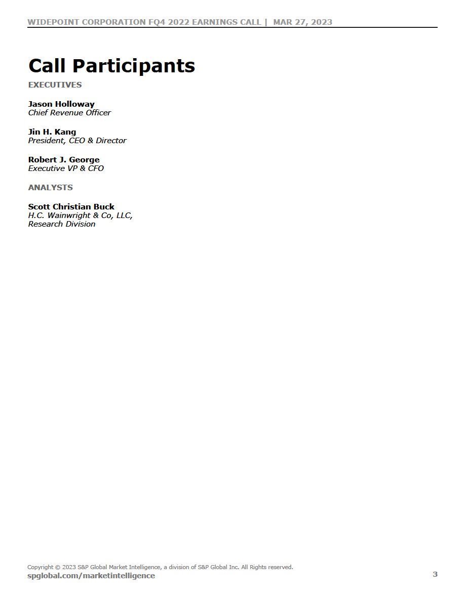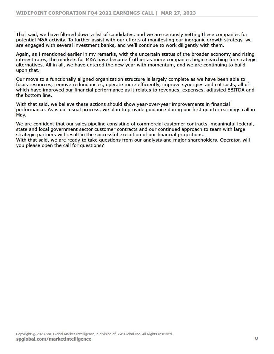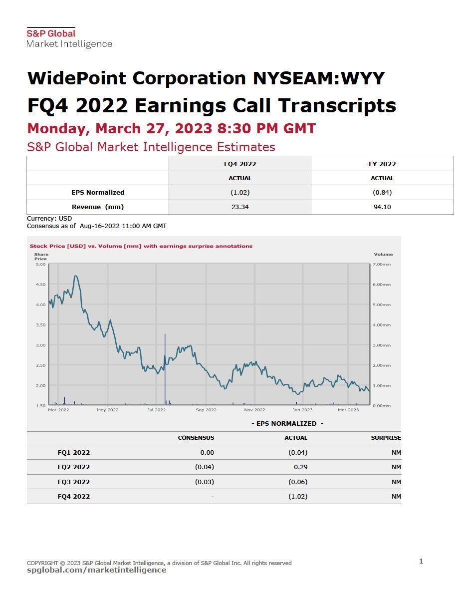 EX-99.1 2 wyy_ex991.htm TRANSCRIPT OF CONFERENCE CALL wyy_ex991.htm
