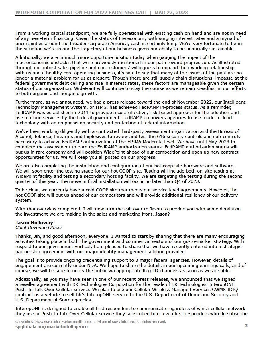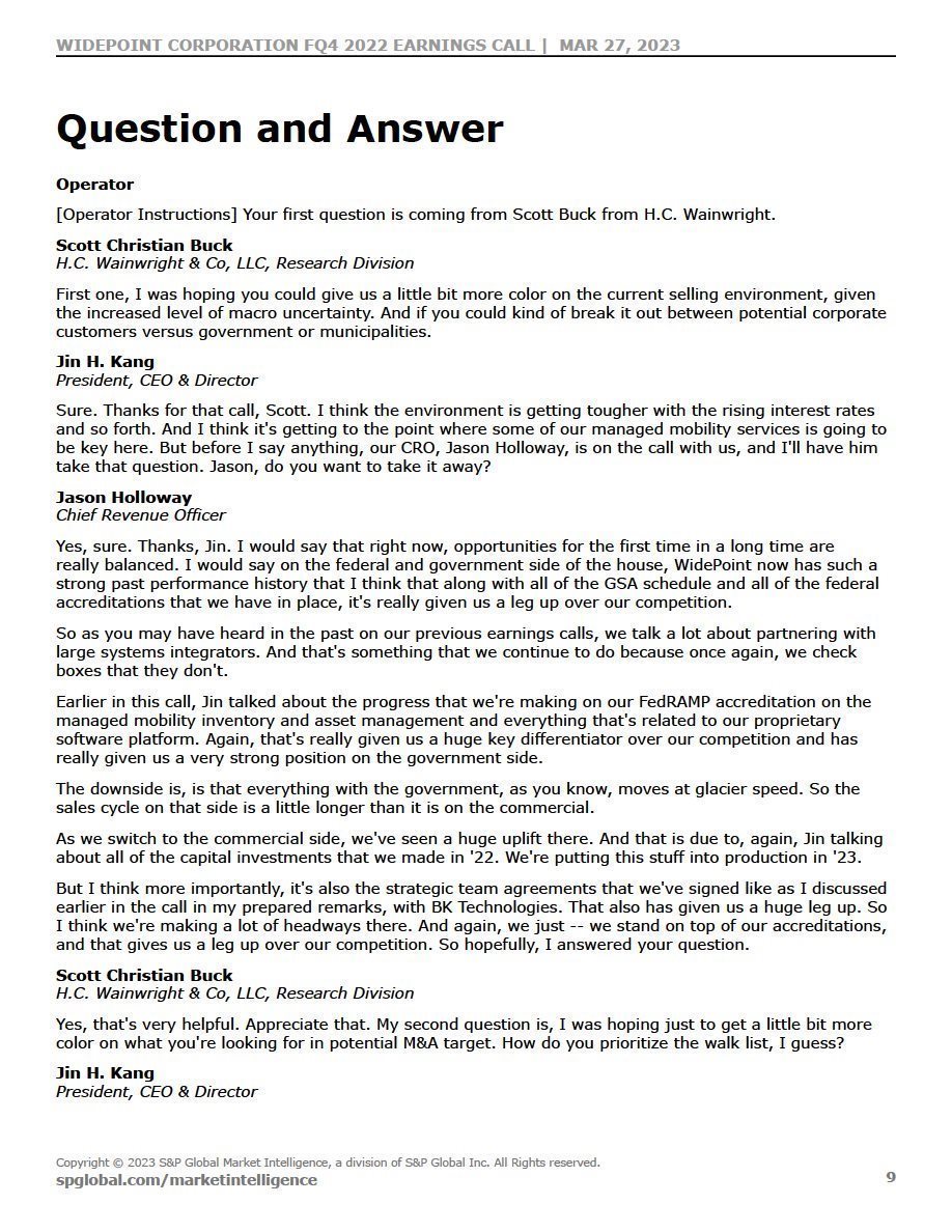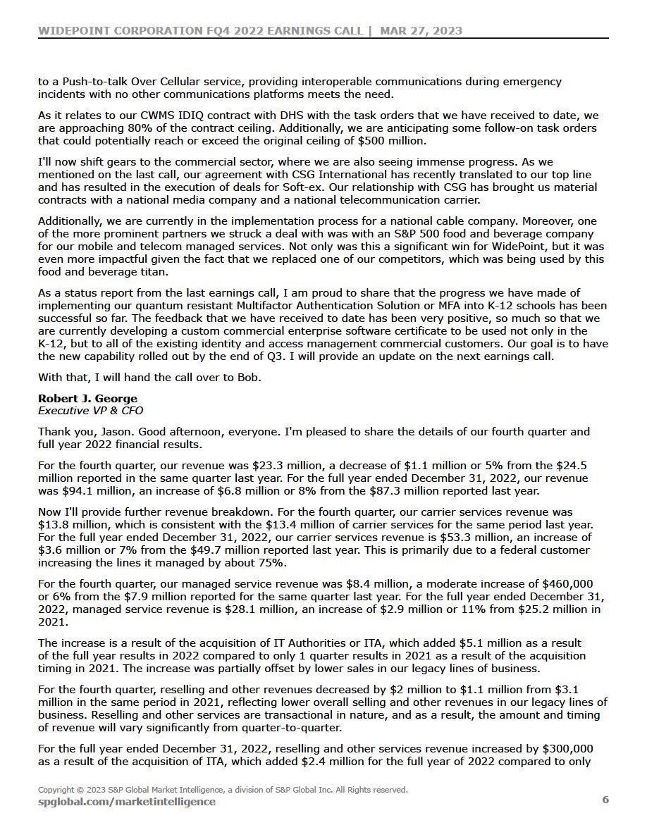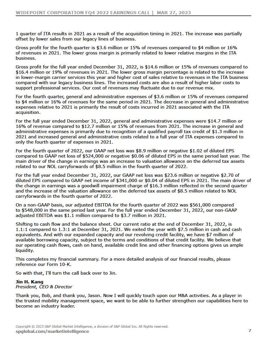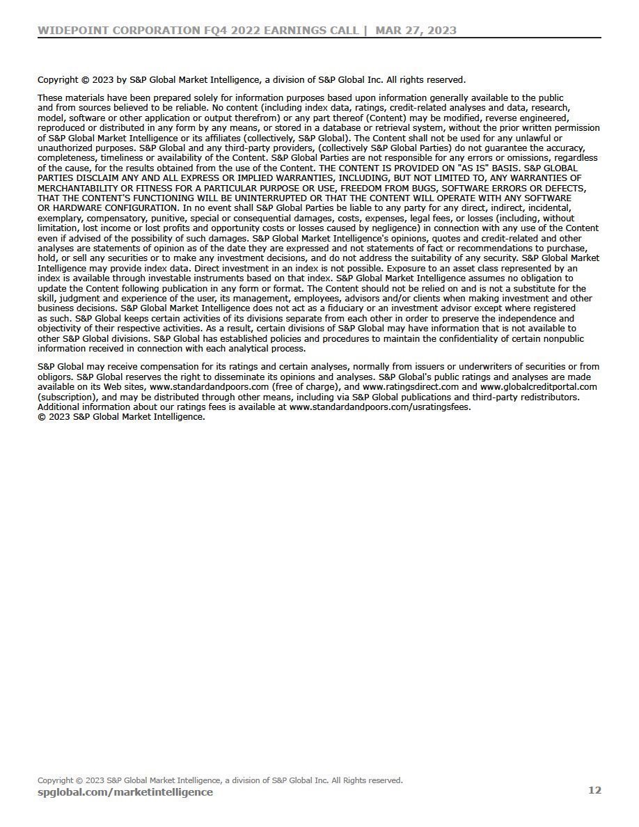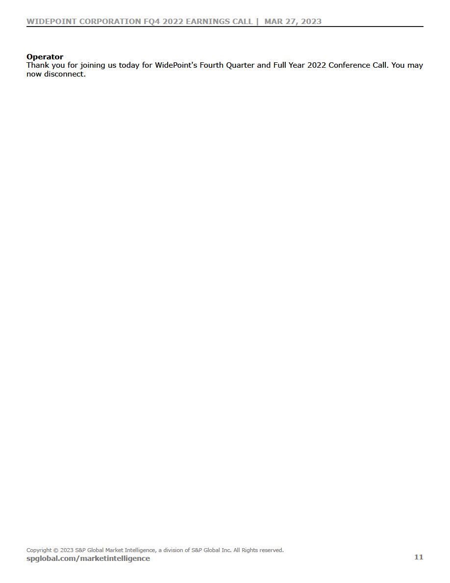 EX-99.1 2 wyy_ex991.htm TRANSCRIPT OF CONFERENCE CALL wyy_ex991.htm