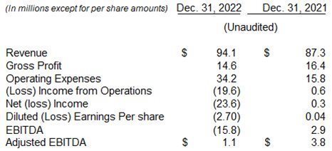 As of December 31, 2022, cash and cash equivalents equaled $7.5 million