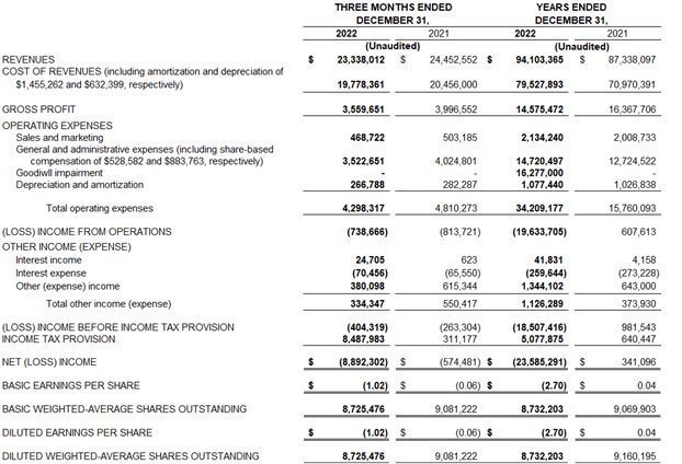 WidePoint Reports Fourth Quarter and Full Year 2022 Financial Results