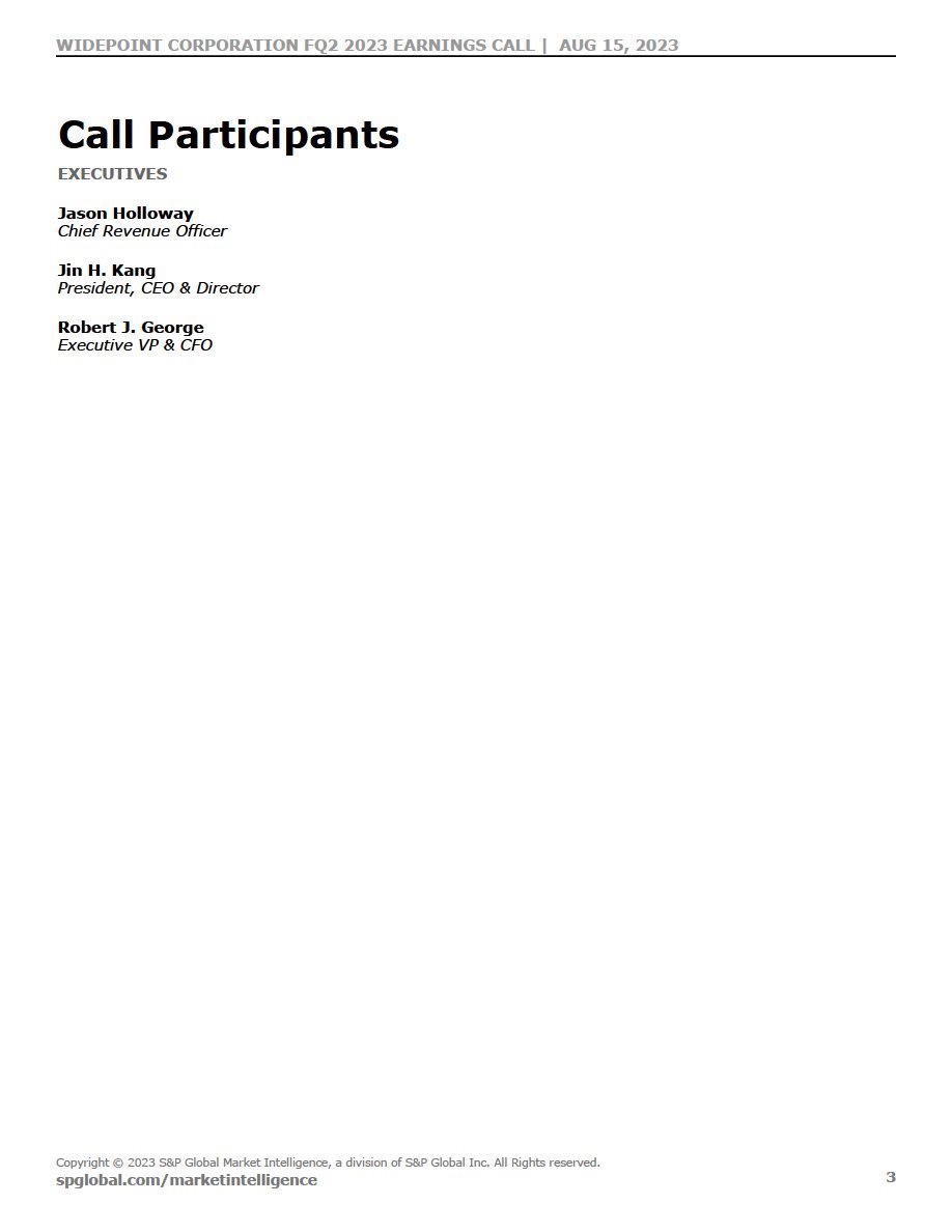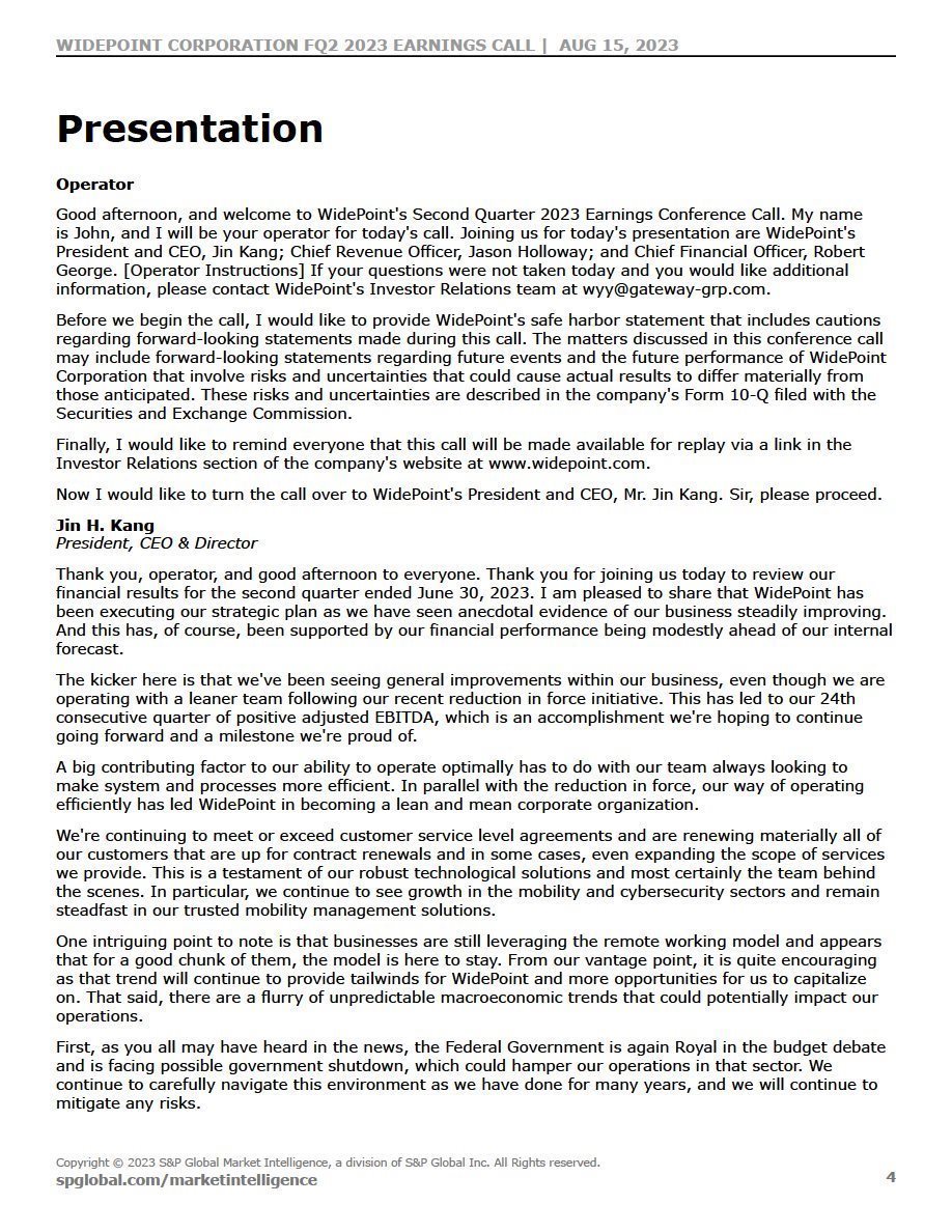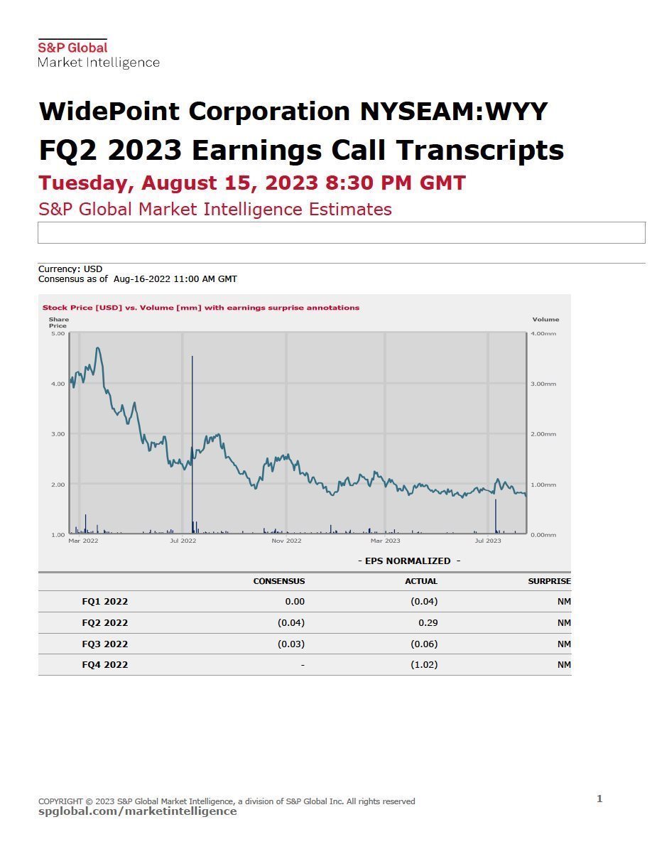 EX-99.1 2 wyy_ex991.htm TRANSCRIPT OF EARNINGS wyy_ex991.htm