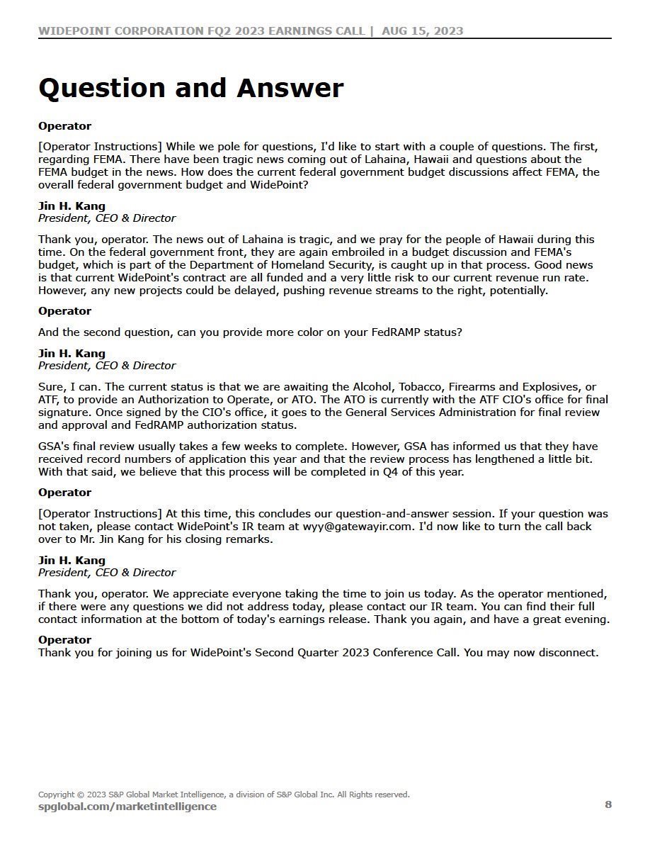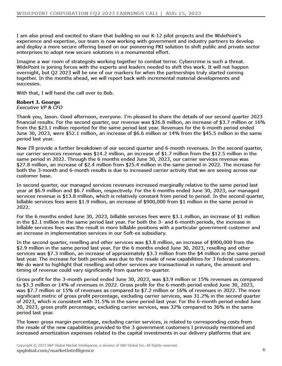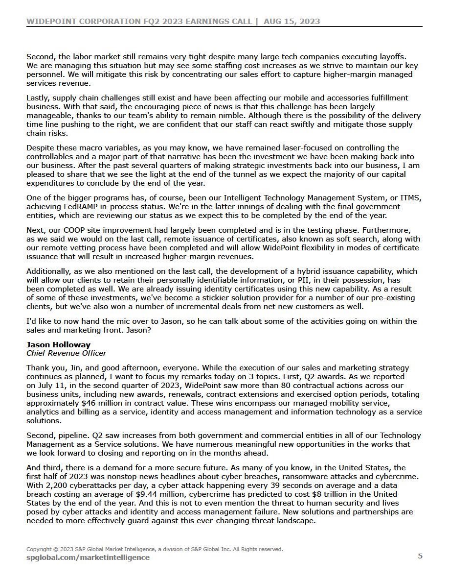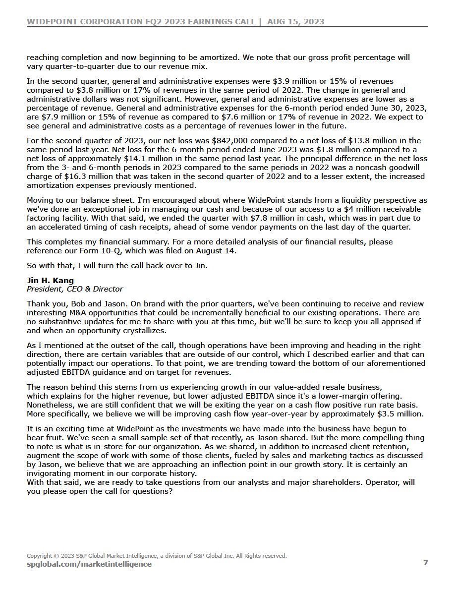 EX-99.1 2 wyy_ex991.htm TRANSCRIPT OF EARNINGS wyy_ex991.htm