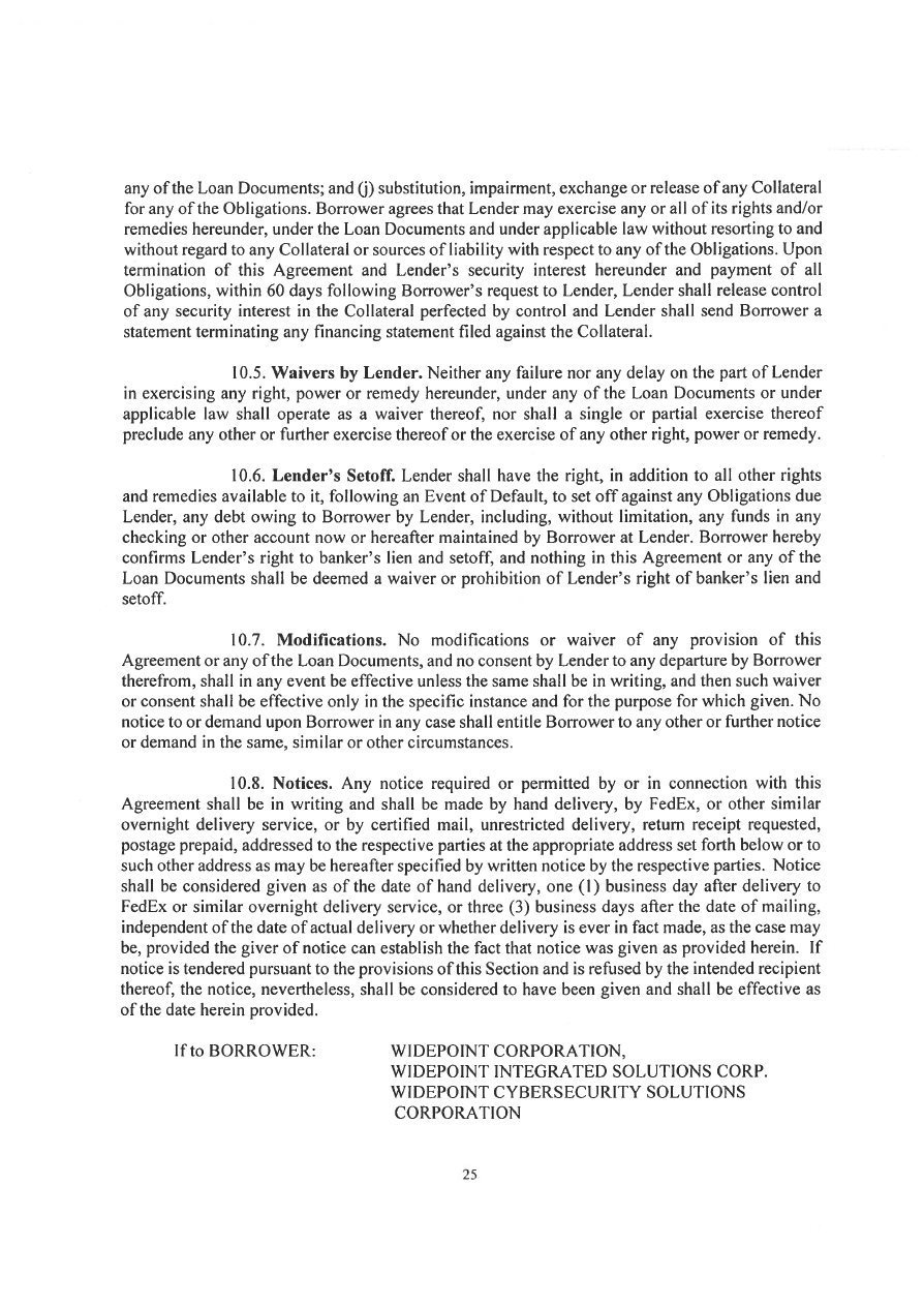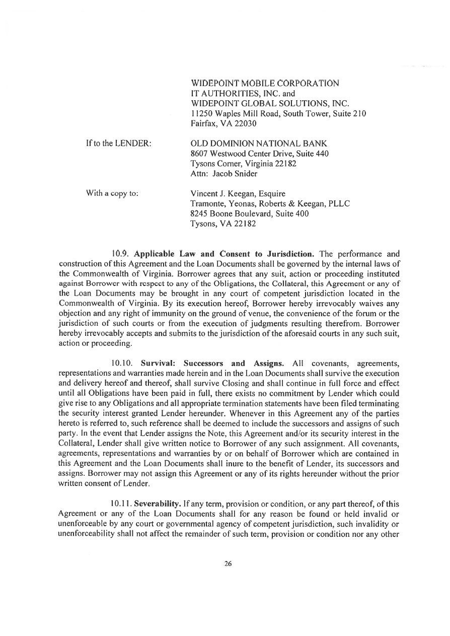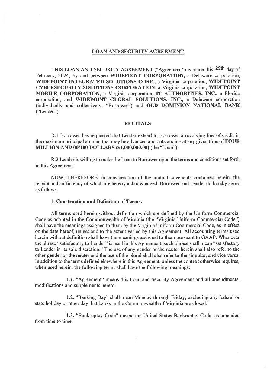 EX-10.1 2 wyy_ex101.htm LOAN AND SECURITY AGREEMENT WITH OLD DOMINION NATIONAL BANK wyy_ex101.htm