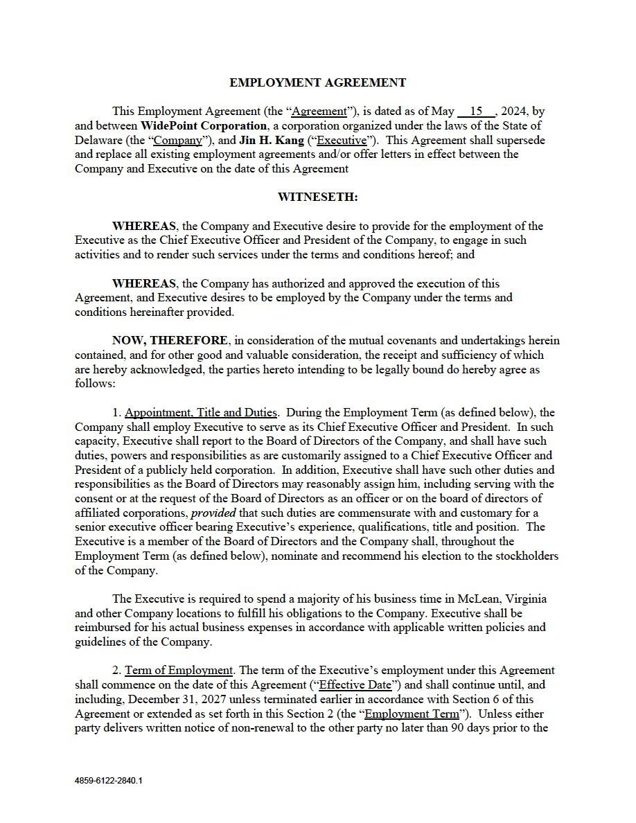 EX-10.1 2 wyy_ex101.htm EMPLOYMENT AGREEMENT WITH JIN KANG wyy_ex101.htm