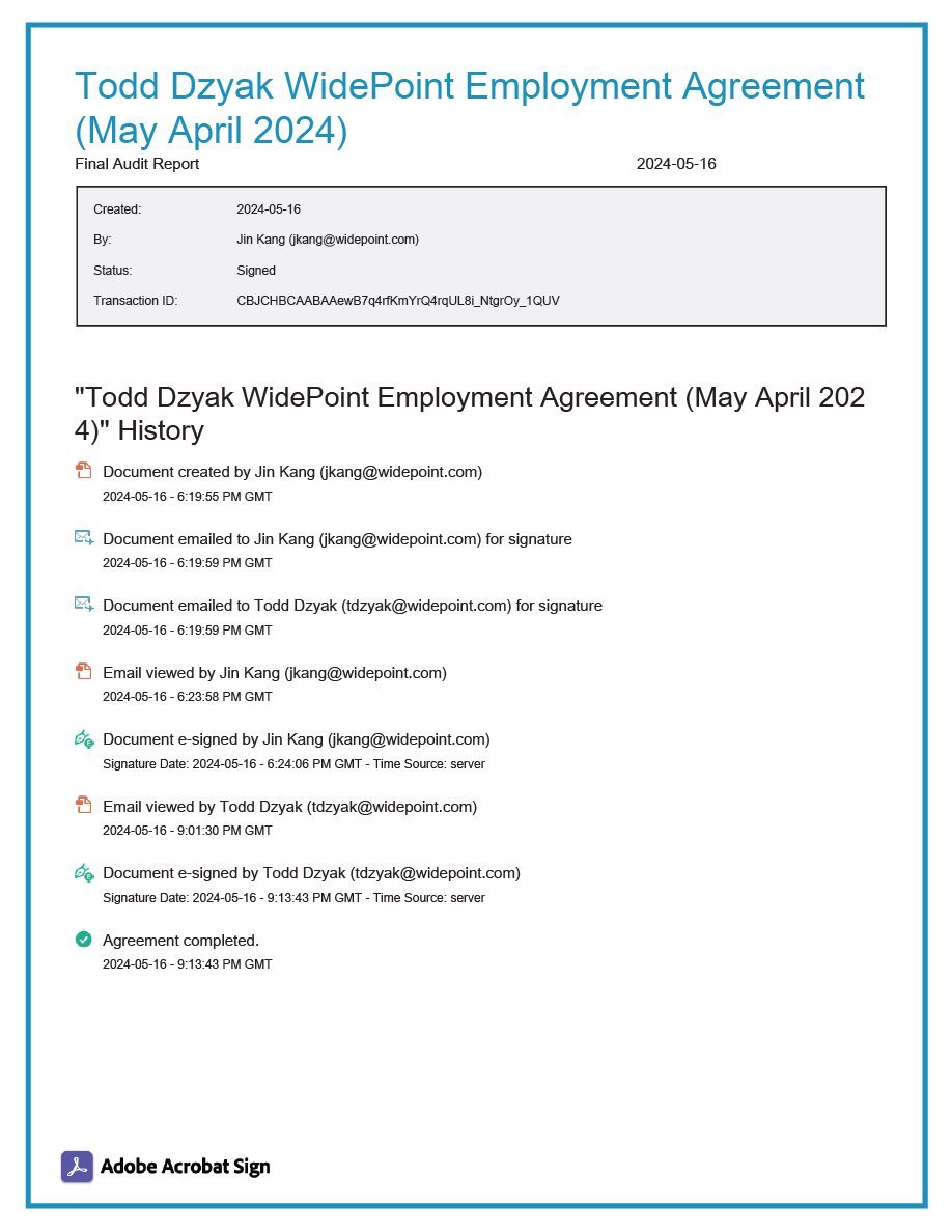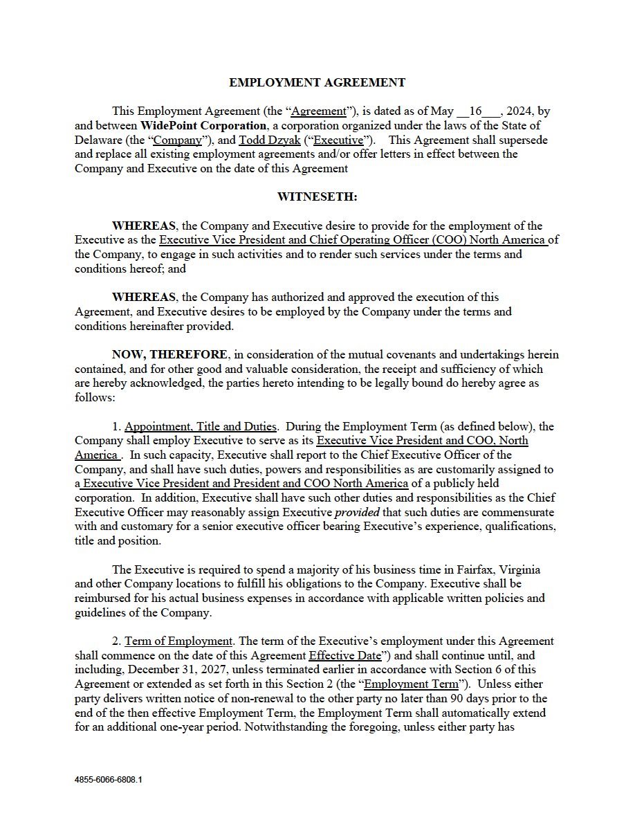 EX-10.2 3 wyy_ex102.htm EMPLOYMENT AGREEMENT WITH TODD DZYAK wyy_ex102.htm