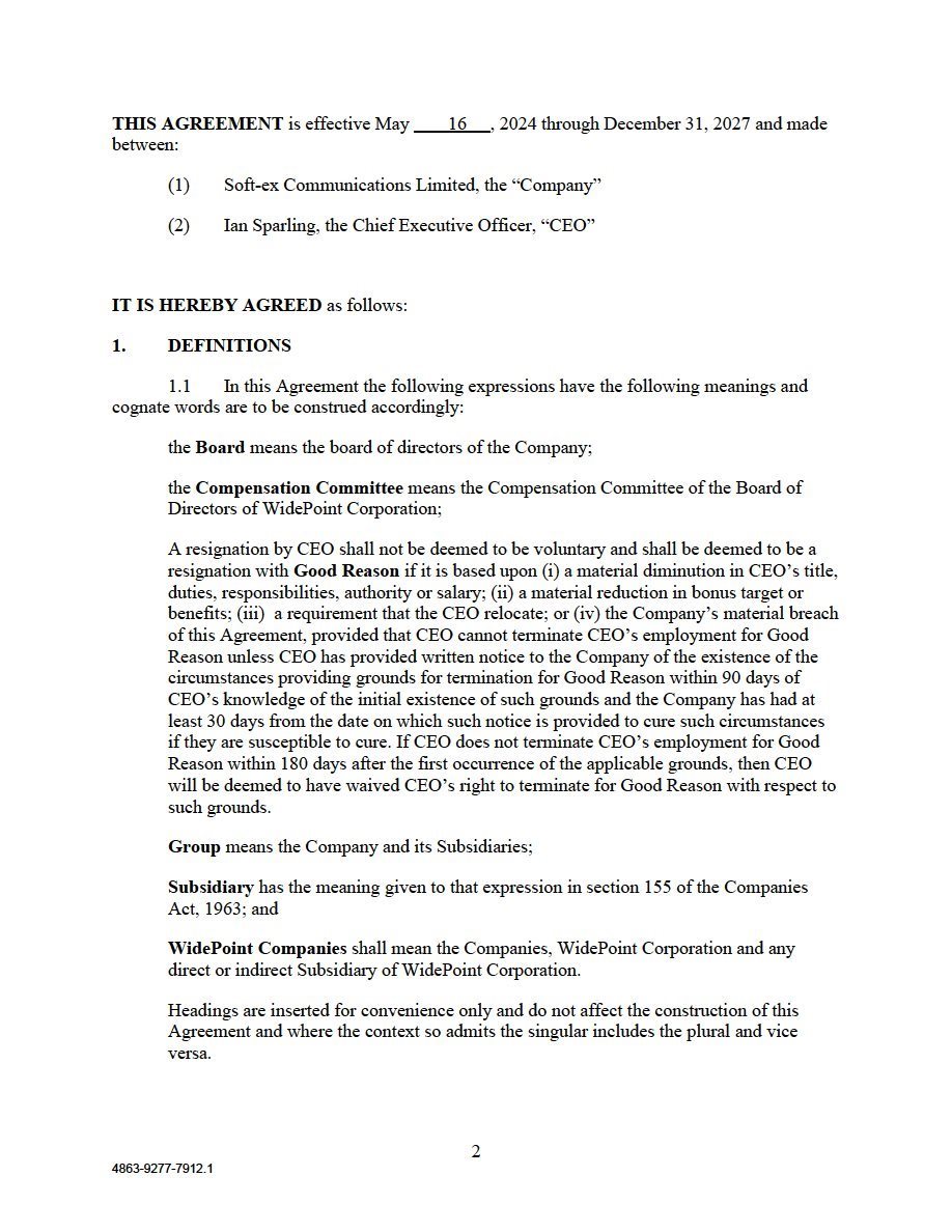 EX-10.5 6 wyy_ex105.htm EMPLOYMENT AGREEMENT WITH IAN SPARLING wyy_ex105.htm