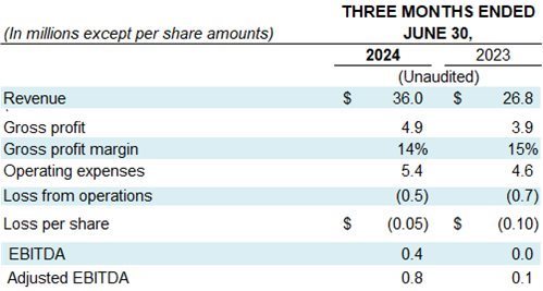 As of June 30, 2024, cash was $4.0 million with no bank debt