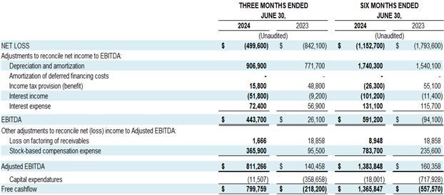 Adjusted EBITDA, a non-GAAP financial measure, was $811,000, a 479% improvement from the same quarter last year