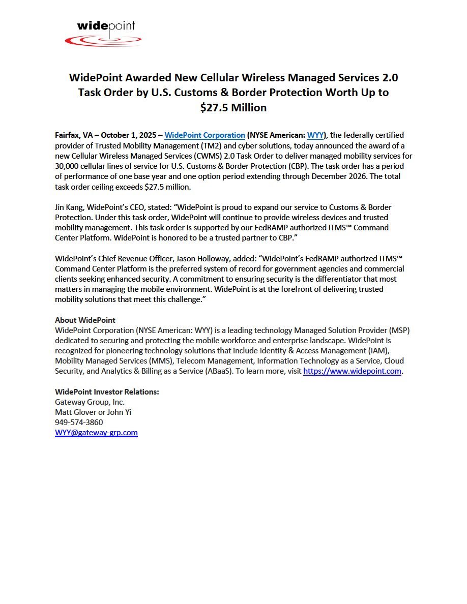 EX-99.1 2 wyy_ex991.htm PRESS RELEASE wyy_ex991.htm