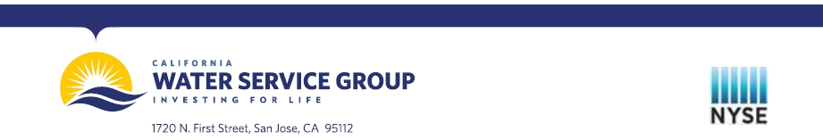This news release contains forward-looking statements within the meaning established by the Private Securities Litigation Reform Act of 1995 ("Act"). The forward-looking statements are intended to qualify under provisions of the federal securities laws for "safe harbor" treatment established by the Act. Forward-looking statements are based on currently available information, expectations, estimates, assumptions and projections, and management's judgment about the Company, the water utility industry and general economic conditions. Such words as will, would, expects, intends, plans, believes, may, estimates, assumes, anticipates, projects, progress, predicts, hopes, targets, forecasts or variations of such words or similar expressions are intended to identify forward-looking statements. Forward-looking statements are not guarantees of future performance. They are subject to uncertainty and changes in circumstances. Actual results may vary materially from what is contained in a forward-looking statement. Factors that may cause a result different than expected or anticipated include, but are not limited to: the impact of the ongoing COVID-19 pandemic and related public health measures; our ability to invest or apply the proceeds from the issuance of common stock in an accretive manner; governmental and regulatory commissions' decisions, including decisions on proper disposition of property; consequences of eminent domain actions relating to our water systems; changes in regulatory commissions' policies and procedures, such as the CPUC’s decision in 2020 to preclude companies from proposing fully decoupled WRAMs in their next GRC filing (which impacted our 2021 GRC filing related to our operations commencing in 2023); the outcome and timeliness of regulatory commissions' actions concerning rate relief and other matters, including with respect to our 2021 GRC filing and our Cost of Capital filing; increased risk of inverse condemnation losses as a result of climate change and drought; our ability to renew leases to operate water systems owned by others on beneficial terms; changes in California State Water Resources Control Board water quality standards; changes in environmental compliance and water quality requirements; electric power interruptions, especially as a result of Public Safety Power Shutoff (PSPS) programs ; housing and customer growth; the impact of opposition to rate increases; our ability to recover costs; availability of water supplies; issues with the implementation, maintenance or security of our information technology systems; civil disturbances or terrorist threats or acts; the adequacy of our efforts to mitigate physical and cyber security risks and threats; the ability of our enterprise risk management processes to identify or address risks adequately; labor relations matters as we negotiate with the unions; changes in customer water use patterns and the effects of conservation, including as a result of drought conditions; our ability to complete, in a timely manner or at all, successfully integrate and achieve anticipated benefits from announced acquisitions; the impact of weather, climate change, natural disasters, and actual or threatened public health emergencies, including disease outbreaks, on our operations, water quality, water availability, water sales and operating results and the adequacy of our emergency preparedness; restrictive covenants in or changes to the credit ratings on our current or future debt that could increase our financing costs or affect our ability to borrow, make payments on debt or pay dividends; risks associated with expanding our business and operations geographically; the impact of stagnating or worsening business and economic conditions, including inflationary pressures, general economic slowdown or a recession, increasing interest rates, and changes in monetary policy; and other risks and unforeseen events described in our SEC filings. When considering forward-looking statements, you should keep in mind the cautionary statements included in this paragraph, as well as the Annual 10-K, Quarterly 10-Q, and other reports filed from time-to-time with the Securities and Exchange Commission (SEC). The Company assumes no obligation to provide public updates of forward-looking statements