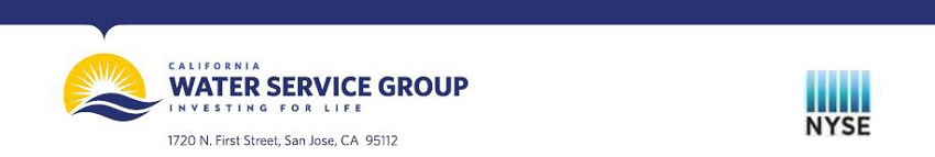 California Water Service Group is the parent company of regulated utilities California Water Service, Hawaii Water Service, New Mexico Water Service, and Washington Water Service, as well as Texas Water Service, a utility holding company. Together, these companies provide regulated and non-regulated water and wastewater service to more than 2.1 million people in California, Hawaii, New Mexico, Washington, and Texas. California Water Service Group’s common stock trades on the New York Stock Exchange under the symbol “CWT.” Additional information is available online at www.calwatergroup.com.