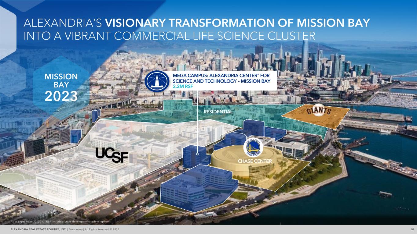 19ALEXANDRIA REAL ESTATE EQUITIES, INC. | Proprietary | All Rights Reserved © 2023 MISSION BAY EARLY DAYS Before Alexandria Created This Life Science Cluster MISSION BAY 2004