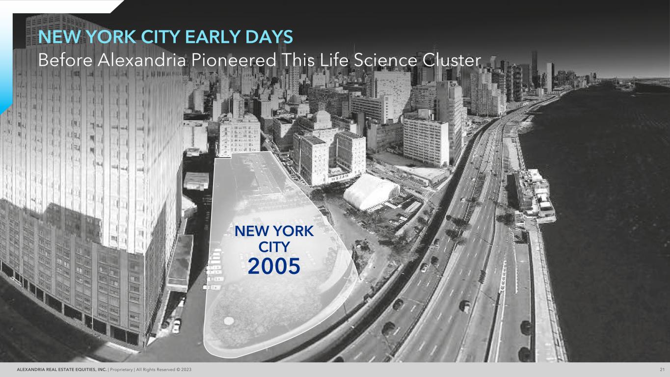 21ALEXANDRIA REAL ESTATE EQUITIES, INC. | Proprietary | All Rights Reserved © 2023 NEW YORK CITY EARLY DAYS Before Alexandria Pioneered This Life Science Cluster NEW YORK CITY 2005