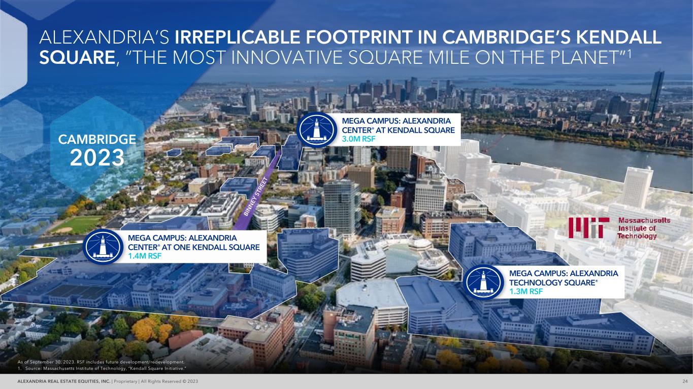 23ALEXANDRIA REAL ESTATE EQUITIES, INC. | Proprietary | All Rights Reserved © 2023 CAMBRIDGE EARLY DAYS Before Alexandria Enhanced This Life Science Cluster CAMBRIDGE 2006
