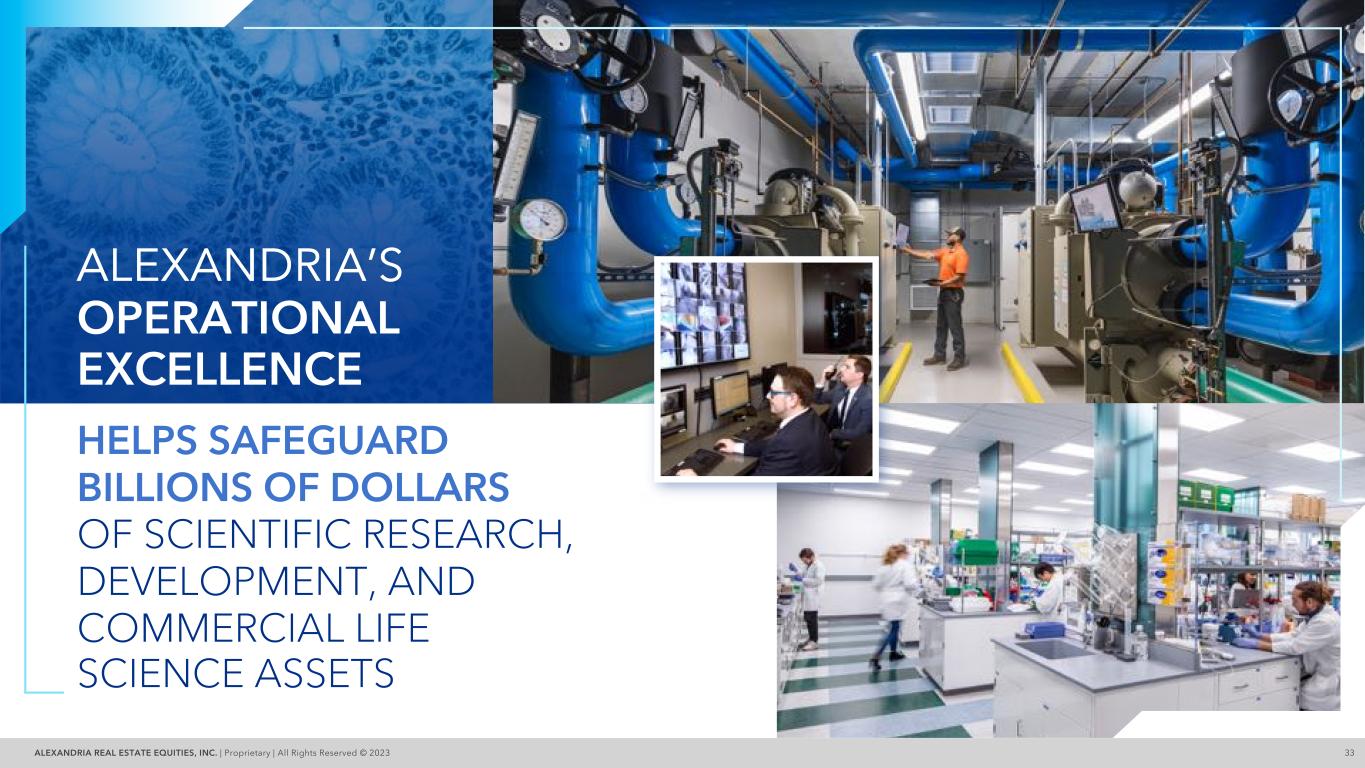 33ALEXANDRIA REAL ESTATE EQUITIES, INC. | Proprietary | All Rights Reserved © 2023 ALEXANDRIA’S OPERATIONAL EXCELLENCE HELPS SAFEGUARD BILLIONS OF DOLLARS OF SCIENTIFIC RESEARCH, DEVELOPMENT, AND COMMERCIAL LIFE SCIENCE ASSETS