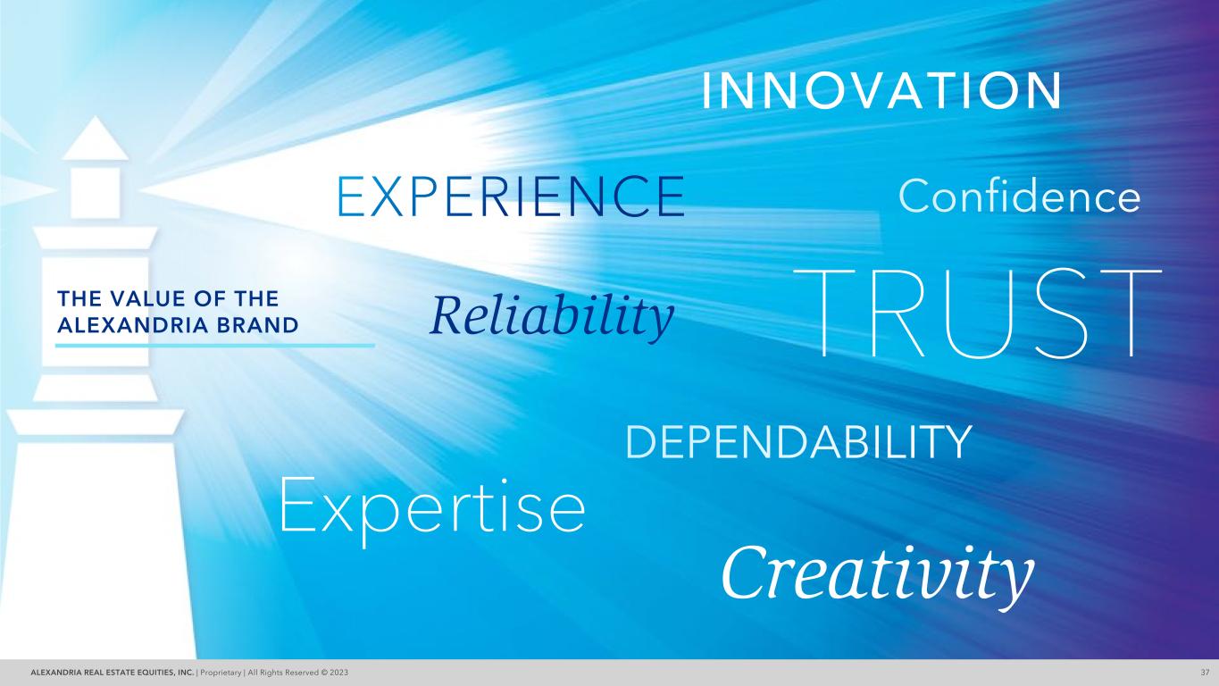 36ALEXANDRIA REAL ESTATE EQUITIES, INC. | Proprietary | All Rights Reserved © 2023 ALEXANDRIA’S RELENTLESS INNOVATION & CREATIVITY BUILDS BRAND LOYALTY