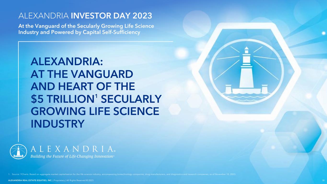 1ALEXANDRIA REAL ESTATE EQUITIES, INC. | Proprietary | All Rights Reserved © 2023 NOVEMBER 29, 2023 | ALEXANDRIA CENTER® for LIFE SCIENCE — NEW YORK CITY ALEXANDRIA INVESTOR DAY 2023 Alexandria: At the Vanguard of the Secularly Growing Life Science Industry and Powered by Capital Self-Sufficiency