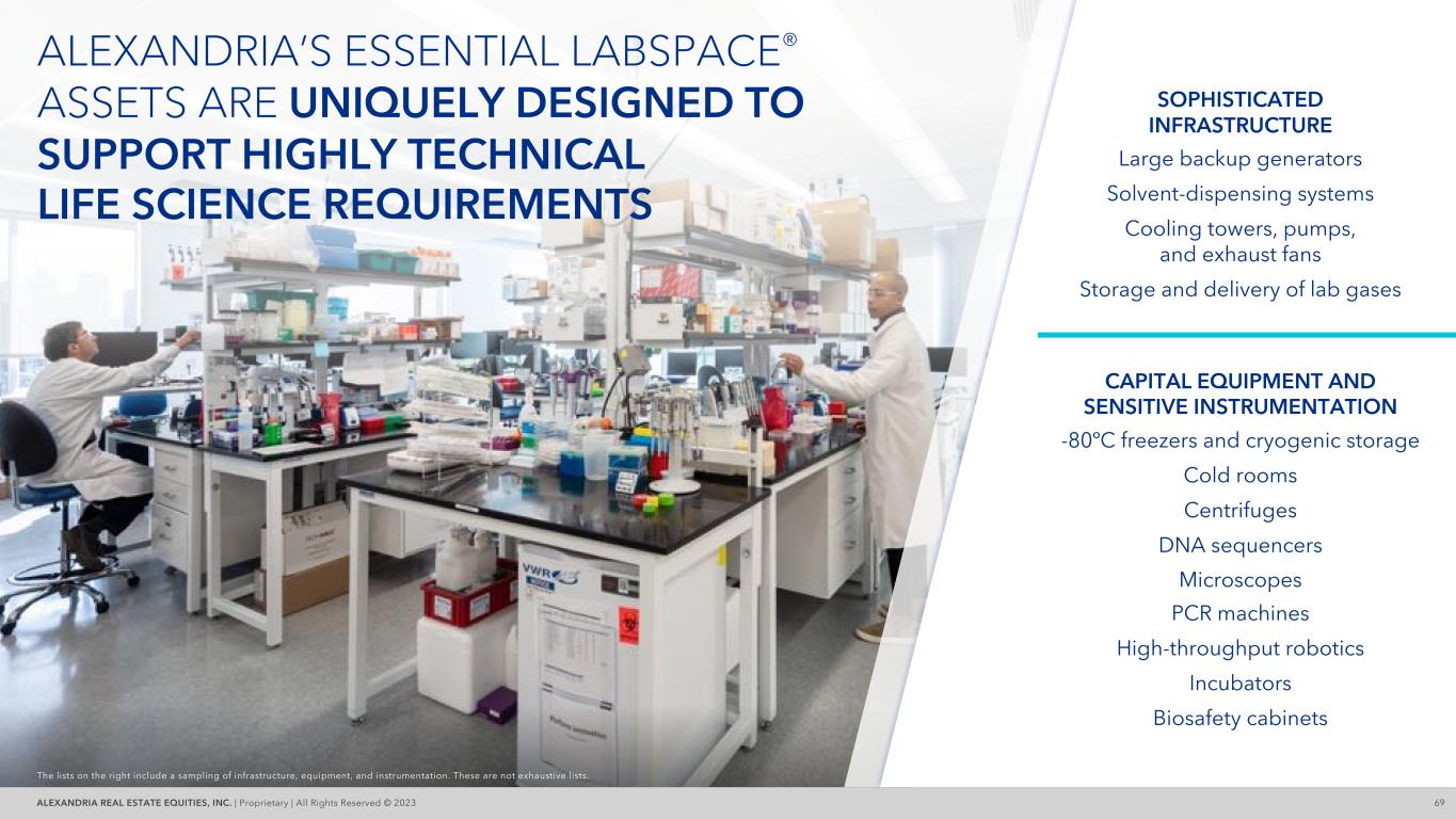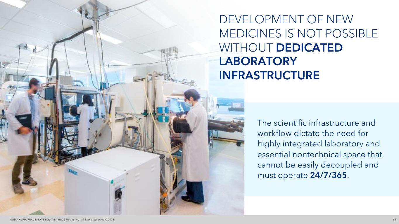 68ALEXANDRIA REAL ESTATE EQUITIES, INC. | Proprietary | All Rights Reserved © 2023 DEVELOPMENT OF NEW MEDICINES IS NOT POSSIBLE WITHOUT DEDICATED LABORATORY INFRASTRUCTURE The scientific infrastructure and workflow dictate the need for highly integrated laboratory and essential nontechnical space that cannot be easily decoupled and must operate 24/7/365.