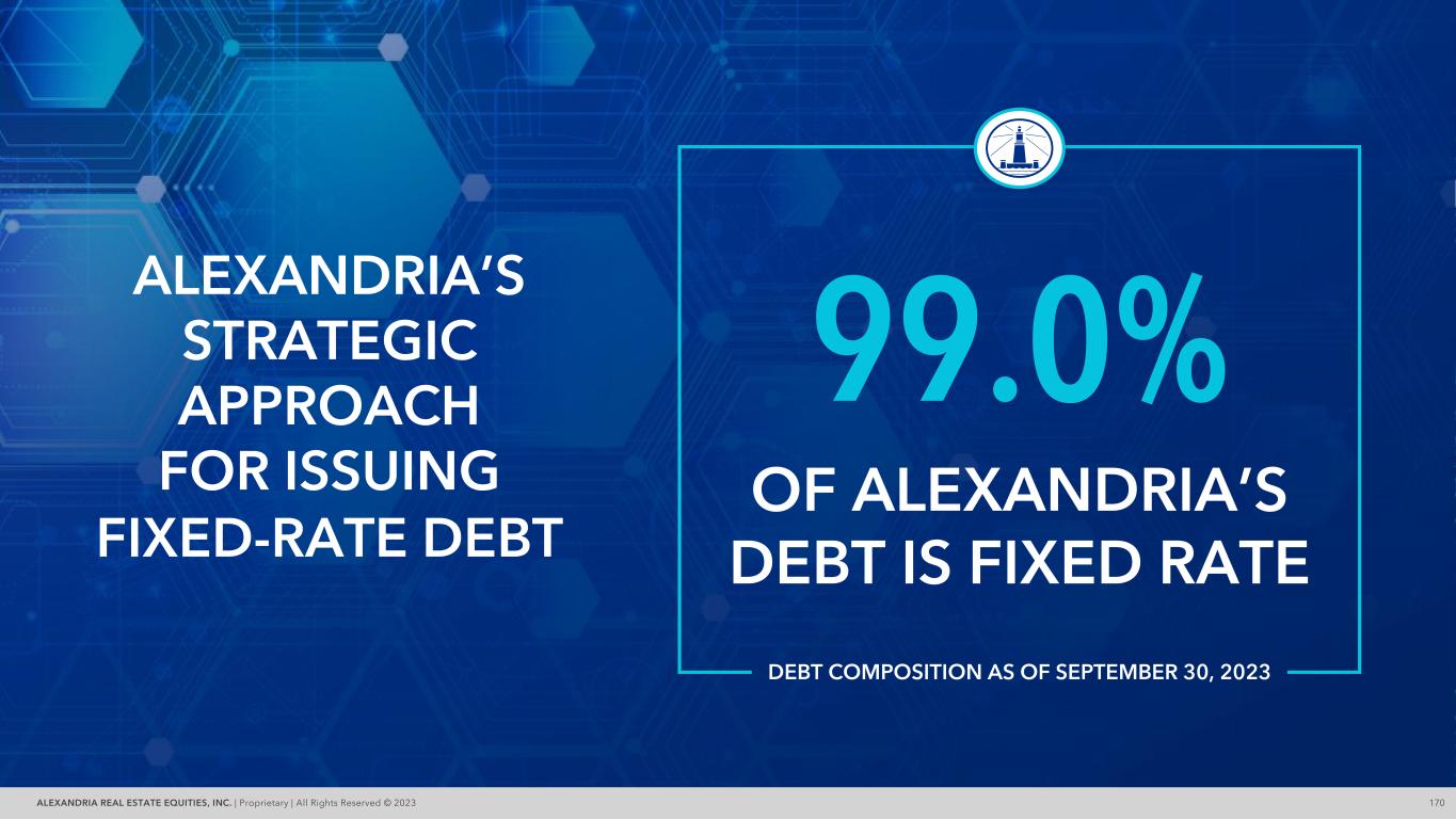 170ALEXANDRIA REAL ESTATE EQUITIES, INC. | Proprietary | All Rights Reserved © 2023 OF ALEXANDRIA’S DEBT IS FIXED RATE 99.0% DEBT COMPOSITION AS OF SEPTEMBER 30, 2023 ALEXANDRIA’S STRATEGIC APPROACH FOR ISSUING FIXED-RATE DEBT