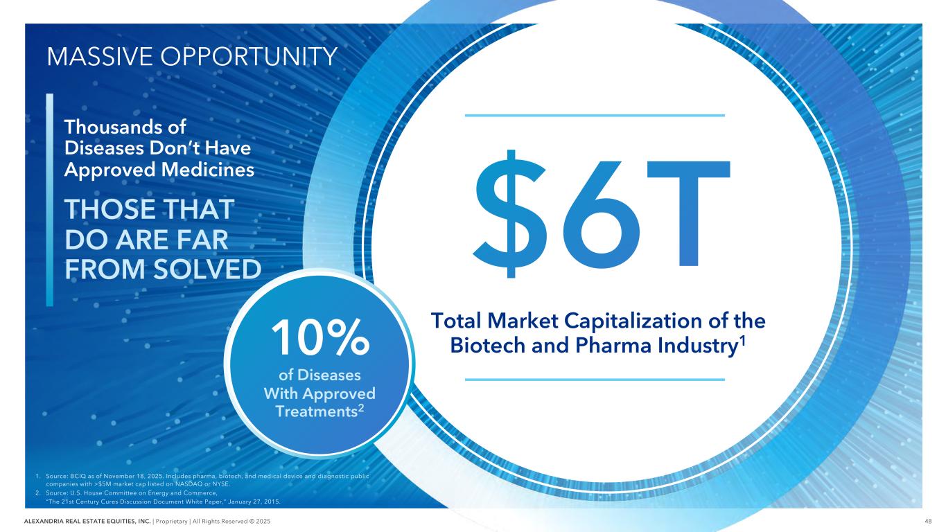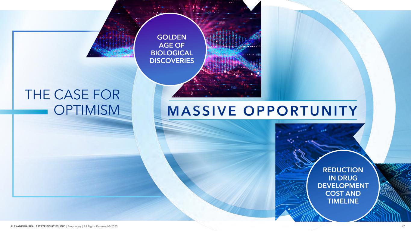 47ALEXANDRIA REAL ESTATE EQUITIES, INC. | Proprietary | All Rights Reserved © 2025 THE CASE FOR OPTIMISM REDUCTION IN DRUG DEVELOPMENT COST AND TIMELINE M A SSIVE OPPORTU N ITY GOLDEN AGE OF BIOLOGICAL DISCOVERIES