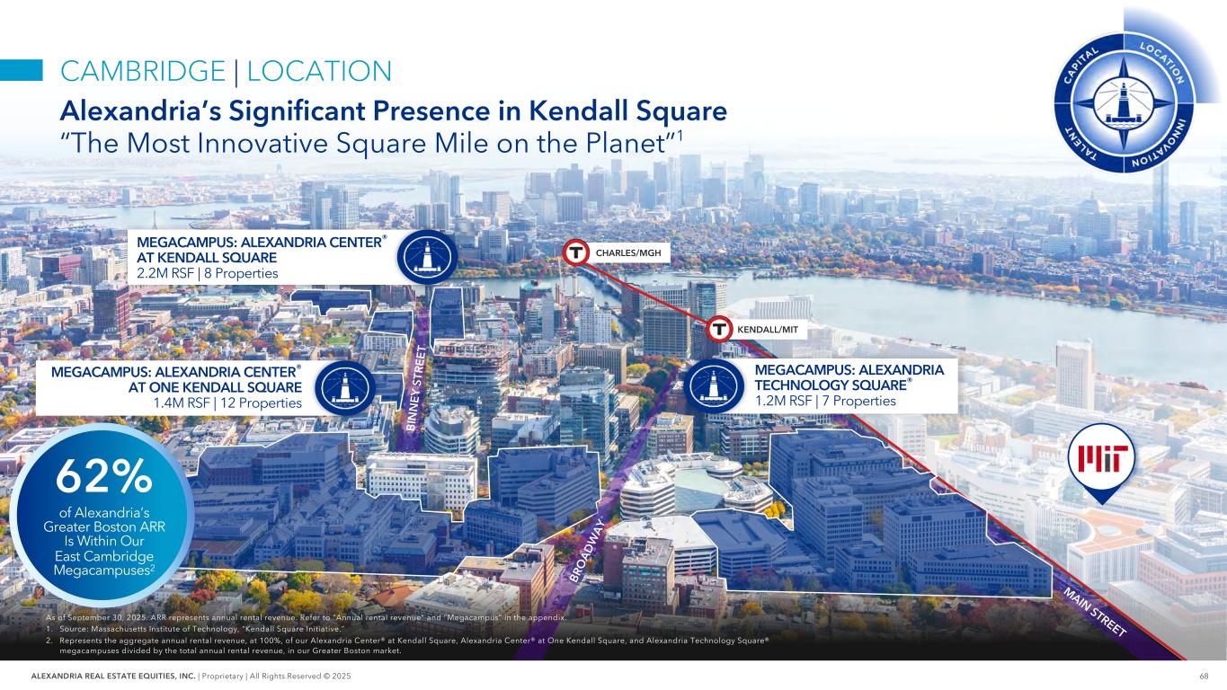 67ALEXANDRIA REAL ESTATE EQUITIES, INC. | Proprietary | All Rights Reserved © 2025 Refer to “Megacampus” in the appendix. First Foundational Megacampus™ in Operation Nearly 20-year ownership of a generational asset with critical adjacency to MIT’s main science campus, at the heart of innovation ALEXANDRIA TECHNOLOGY SQUARE® Cambridge, Greater Boston