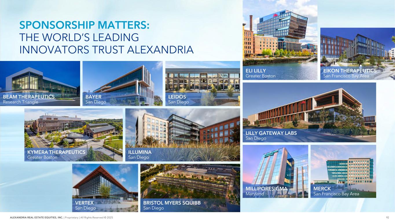92ALEXANDRIA REAL ESTATE EQUITIES, INC. | Proprietary | All Rights Reserved © 2025 ELI LILLY Greater Boston SPONSORSHIP MATTERS: THE WORLD’S LEADING INNOVATORS TRUST ALEXANDRIA BAYER San Diego BRISTOL MYERS SQUIBB San Diego KYMERA THERAPEUTICS Greater Boston EIKON THERAPEUTICS San Francisco Bay Area LILLY GATEWAY LABS San Diego LEIDOS San Diego VERTEX San Diego BEAM THERAPEUTICS Research Triangle ILLUMINA San Diego MERCK San Francisco Bay Area MILLIPORESIGMA Maryland