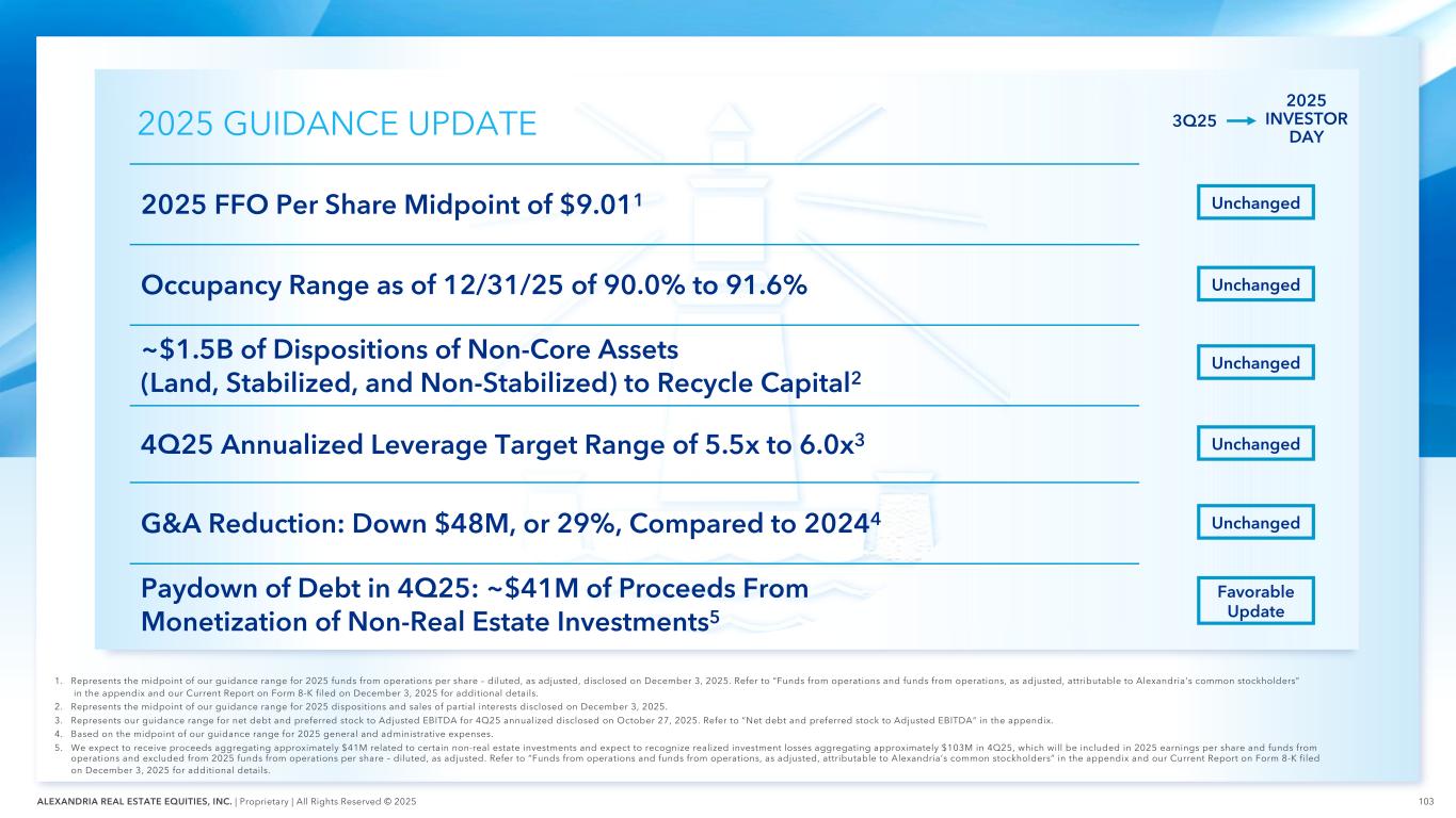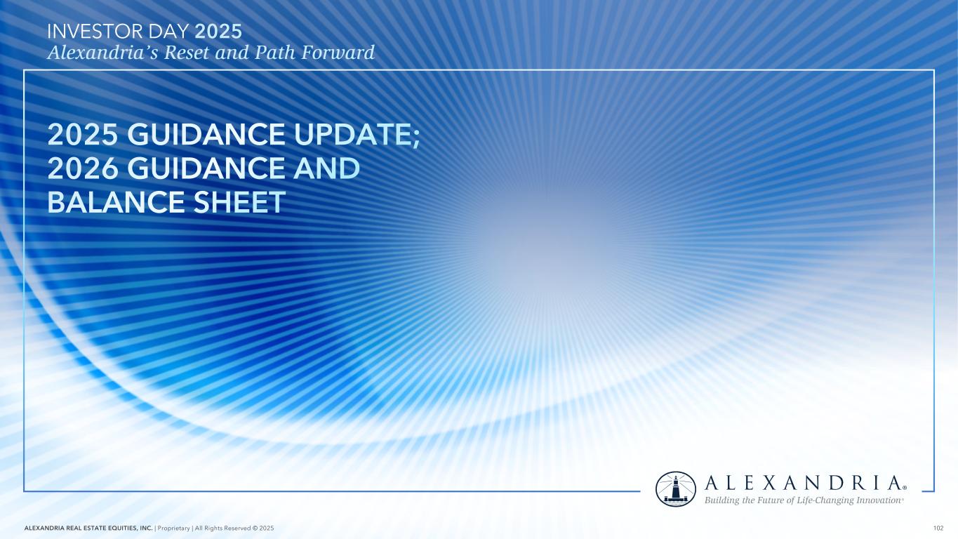 102ALEXANDRIA REAL ESTATE EQUITIES, INC. | Proprietary | All Rights Reserved © 2025 INVESTOR DAY 2025 Alexandria’s Reset and Path Forward