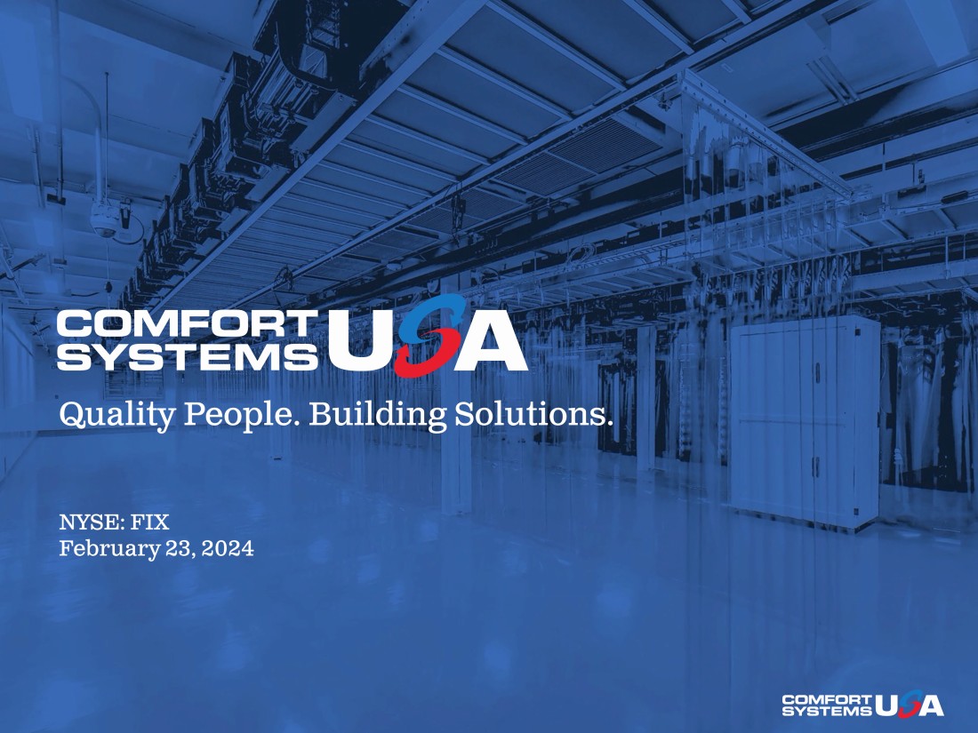 Quality People. Building Solutions. NYSE: FIX February 23, 2024